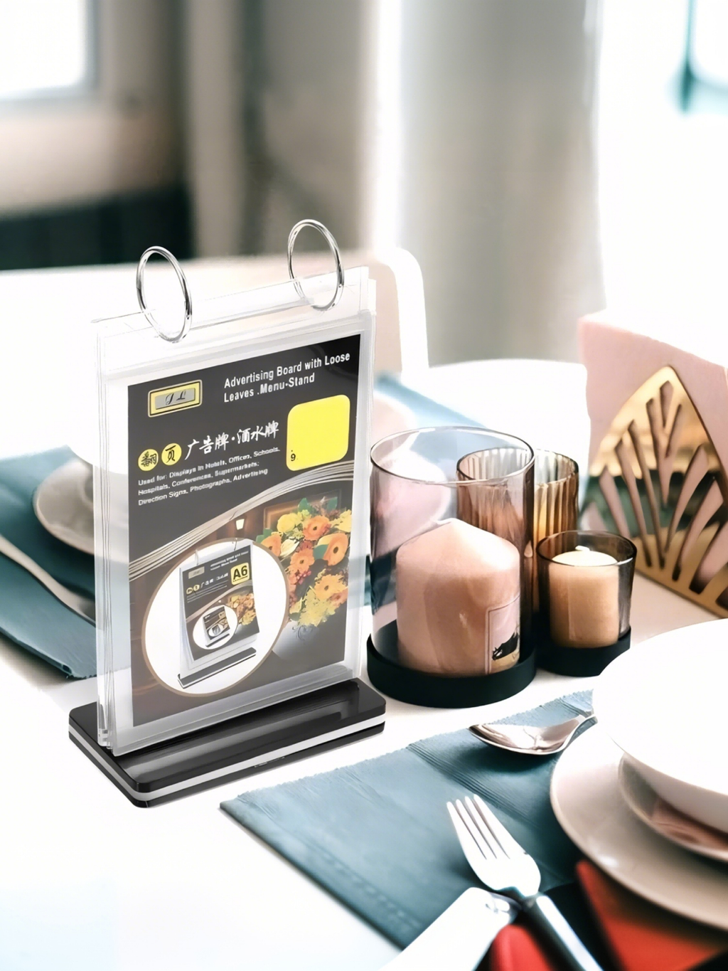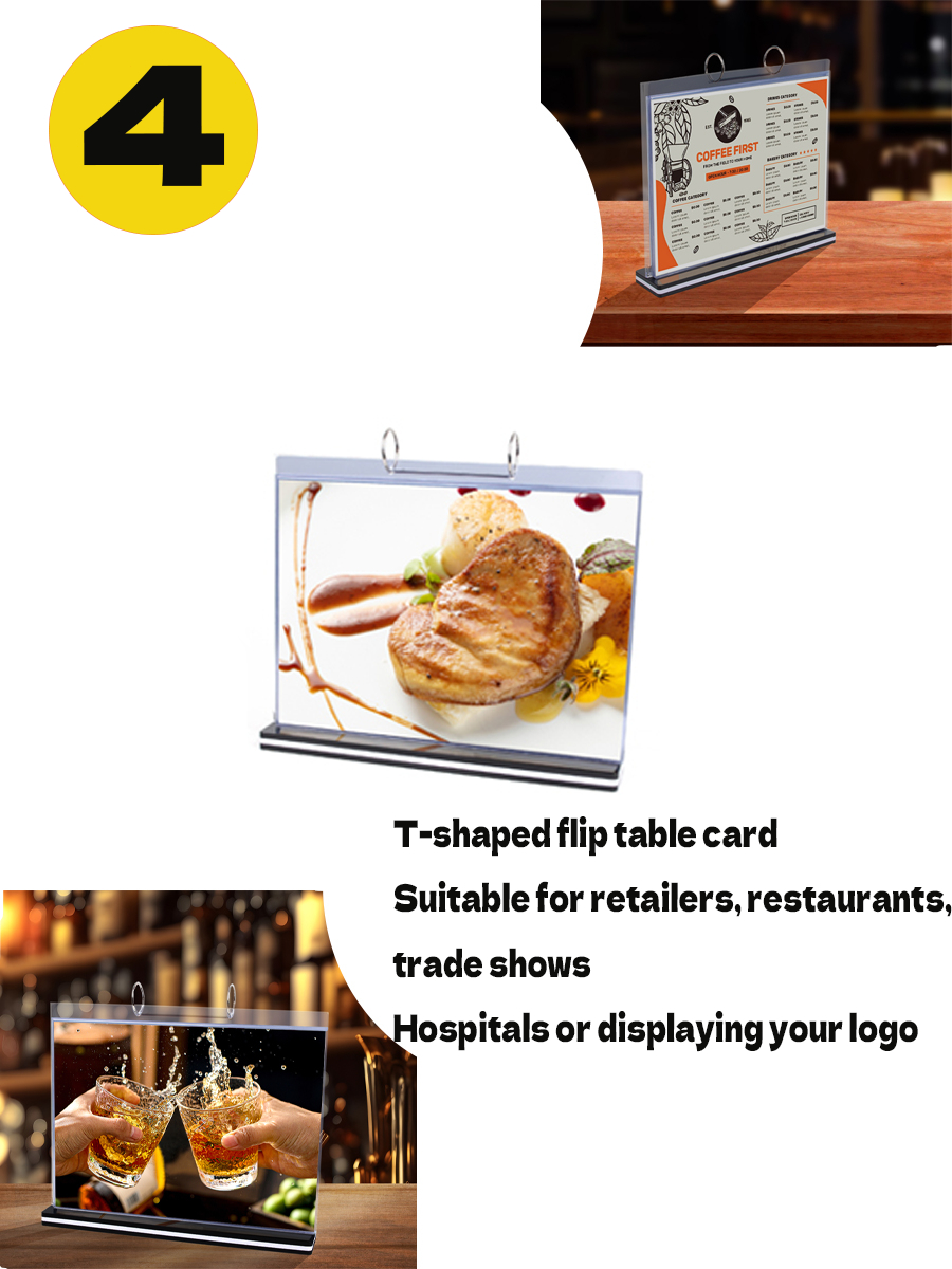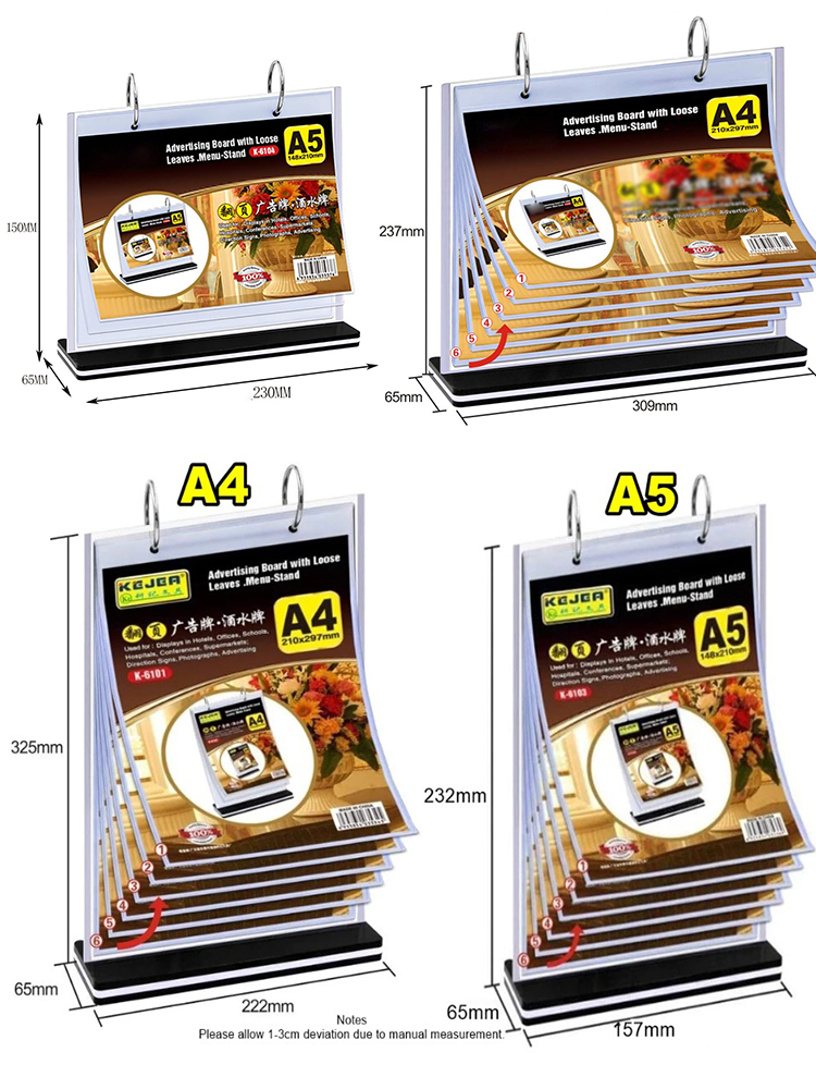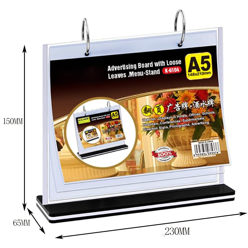 A4 A5 Flip Acrylic Restaurant Menu Stand Ring Binder Display Holder Permit Label Shop Promos