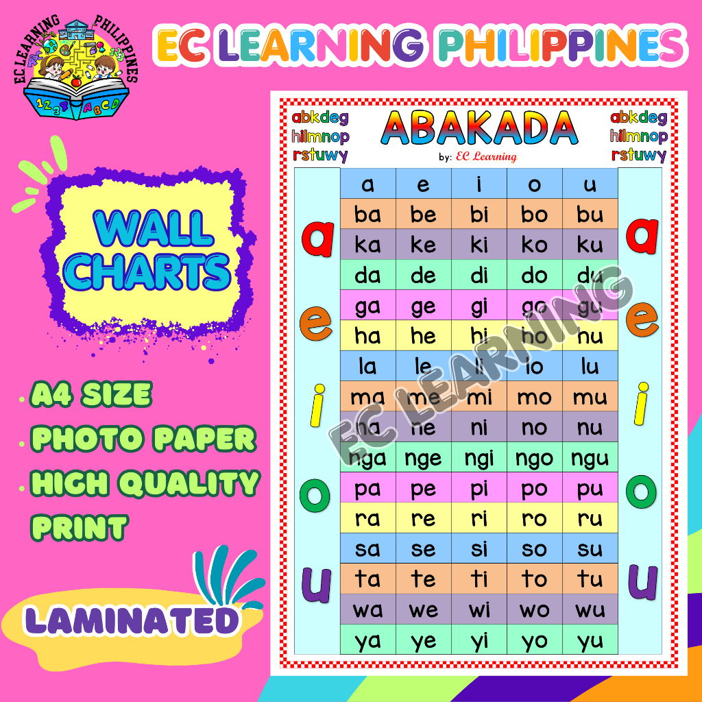 A4 ABAKADA Laminated Educational Wall chart for kids - EC LEARNING PHILIPPINES