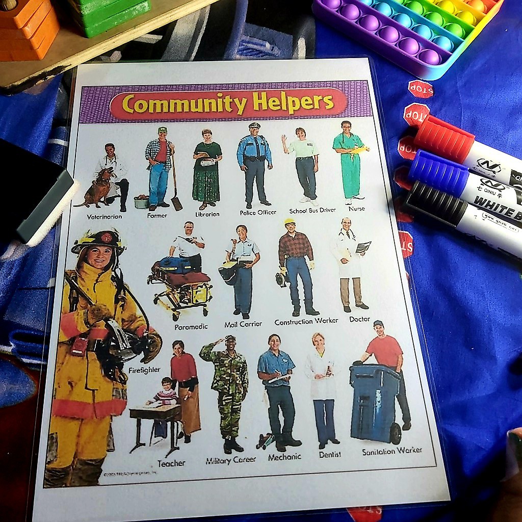 A4 COMMUNITY HELPERS Laminated Educational Wall Chart for kids