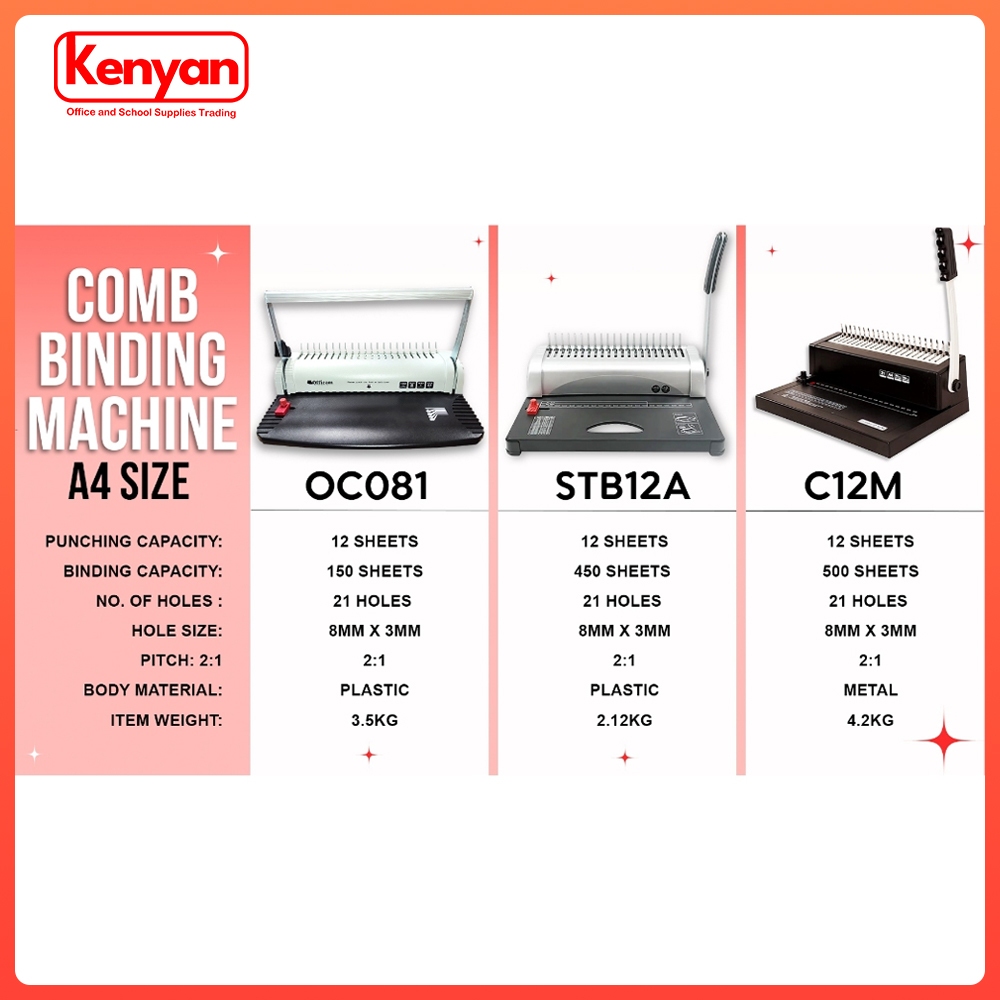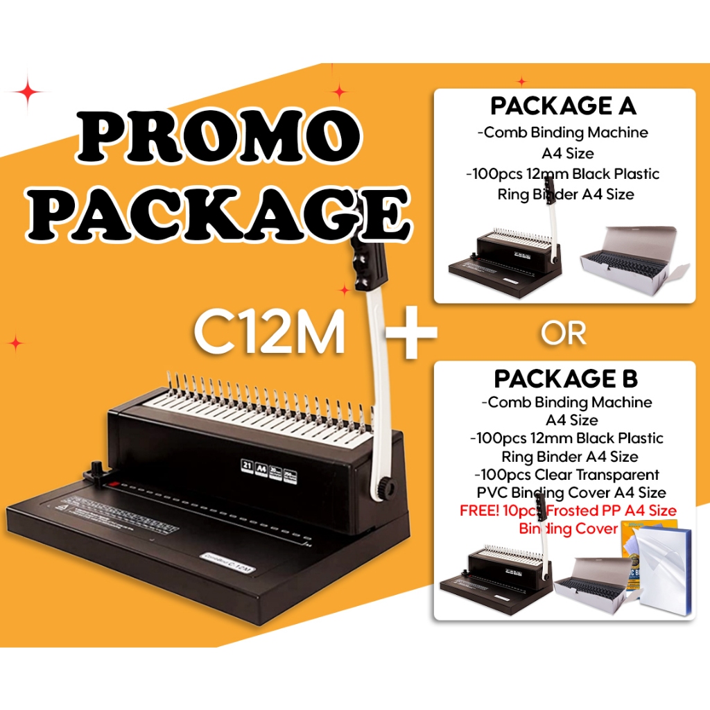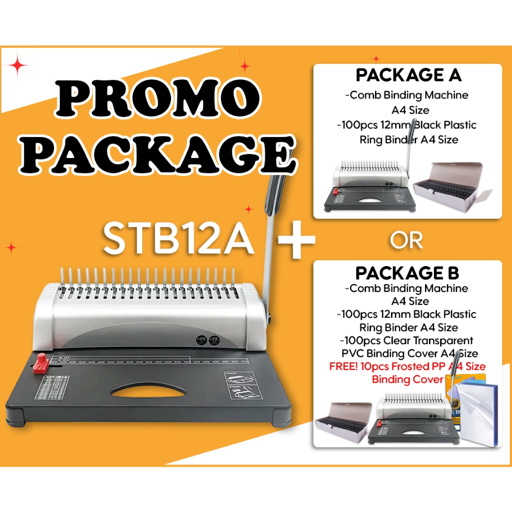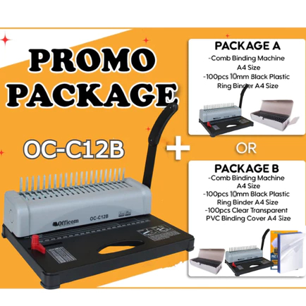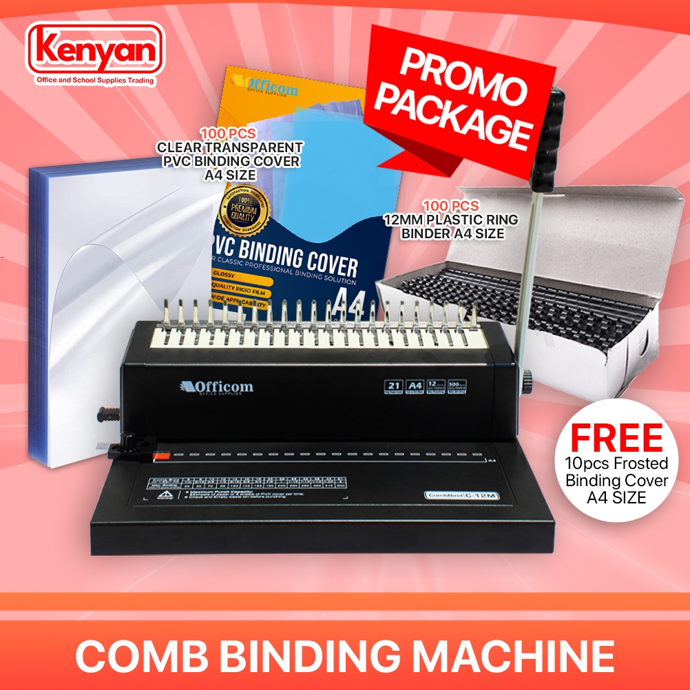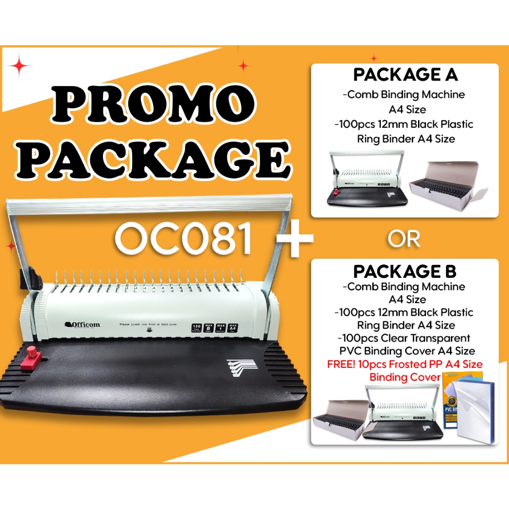A4 Comb Binder Set Machines + 100 Plastic Ring Binders + PVC & PP Clear Binding Covers Officom Pack
