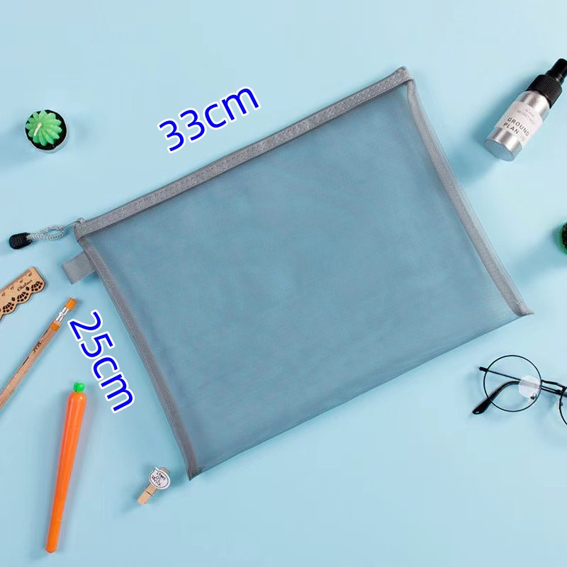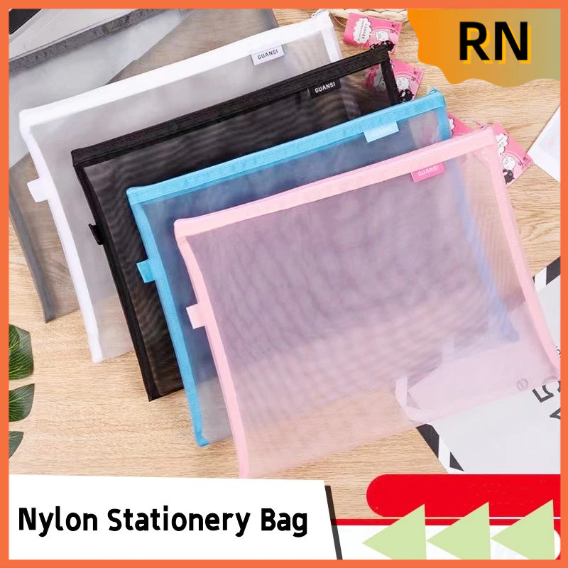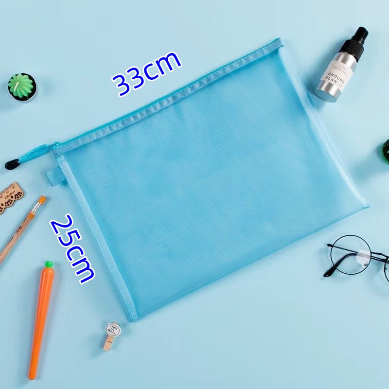 A4 Document Bag Transparent Nylon Mesh Information Bag Student Learning Zipper Work Bag