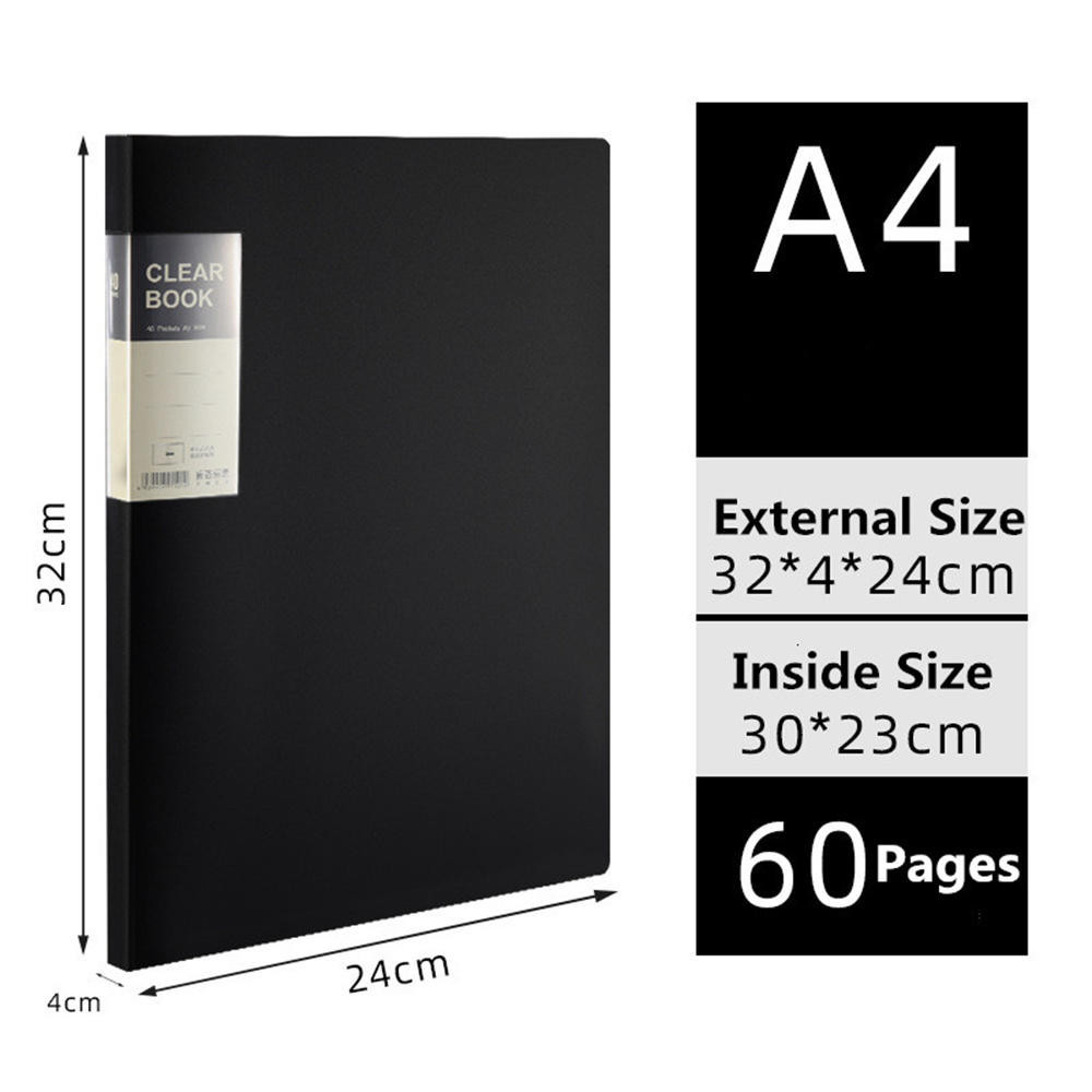A4 File Folder Display Book 20/30/40/60 Pages Transparent Insert Paper Document Organizer Bag Office School Supplies Stationery