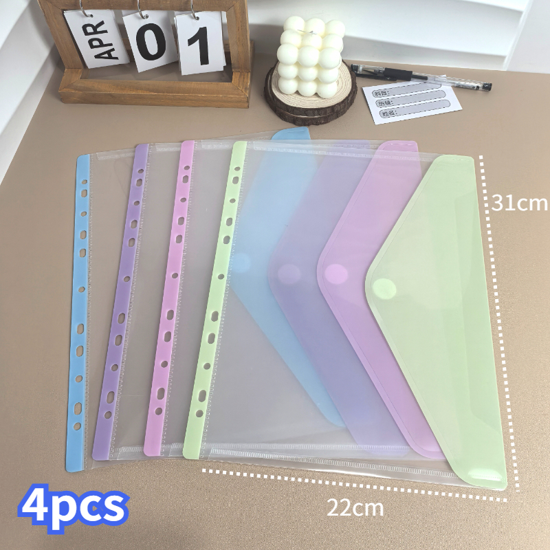 A4/Long File Bag Loose Leaf Transparent Data Book 11Hole File Organizer Mixed Color Binder Pouch Set