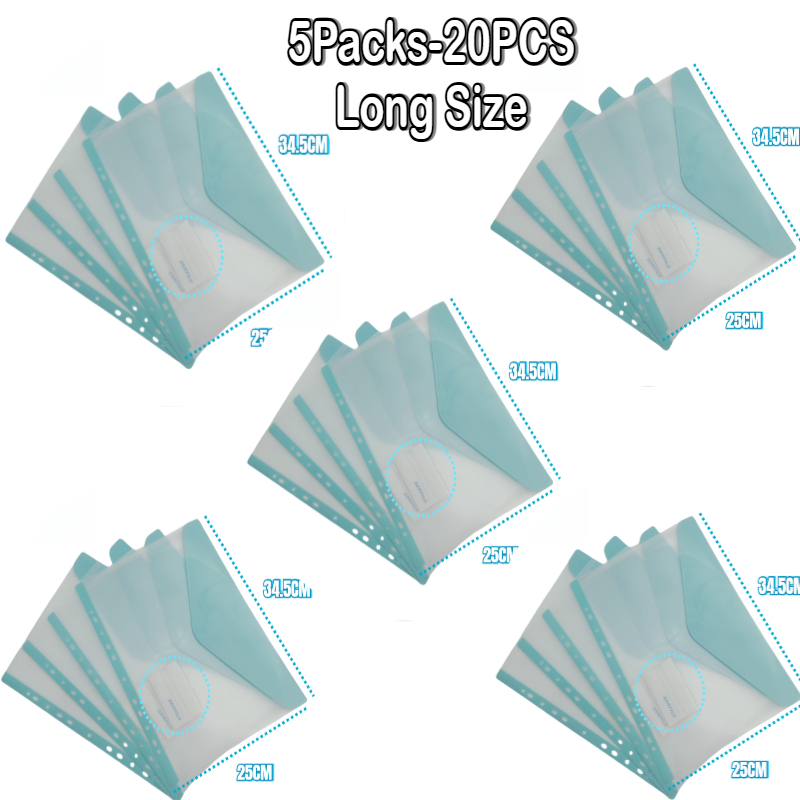 A4/Long Loose Leaf Plastic Envelope Binder Pouch Paper Organizer Transparent Waterproof PP 11Holes