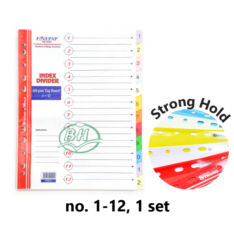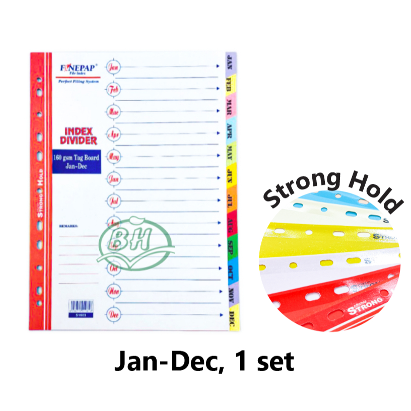 A4 Medium Thick 160g Paper Index Divider Strong/Medium Protection,11 Holes Numbering/ Alphabets/ Months/ 5&10 Color Tabs