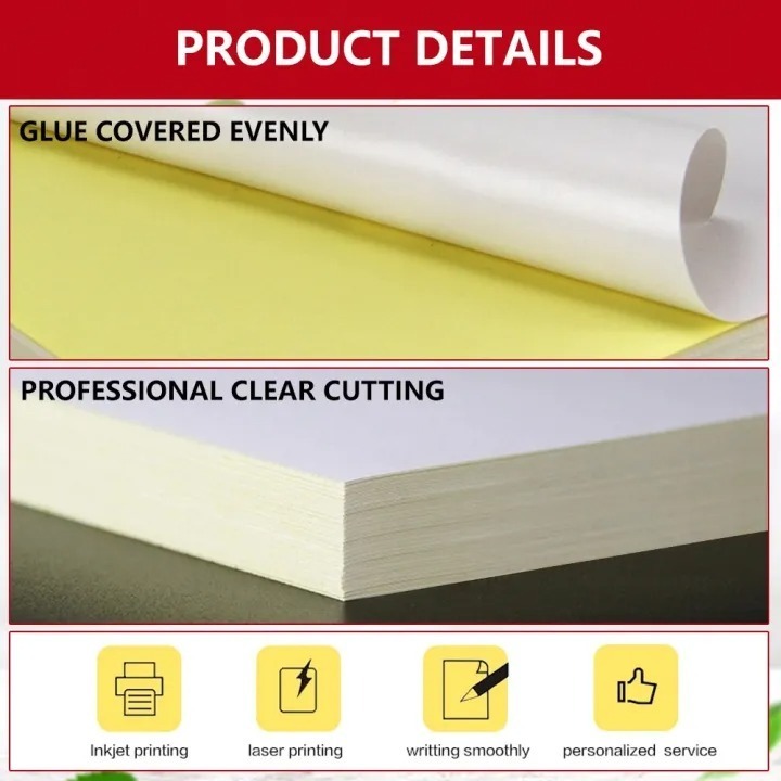 A4 Printable Sticker Paper Matte Glossy 100 Sheets for Laser Inkjet Printers Home Supplies