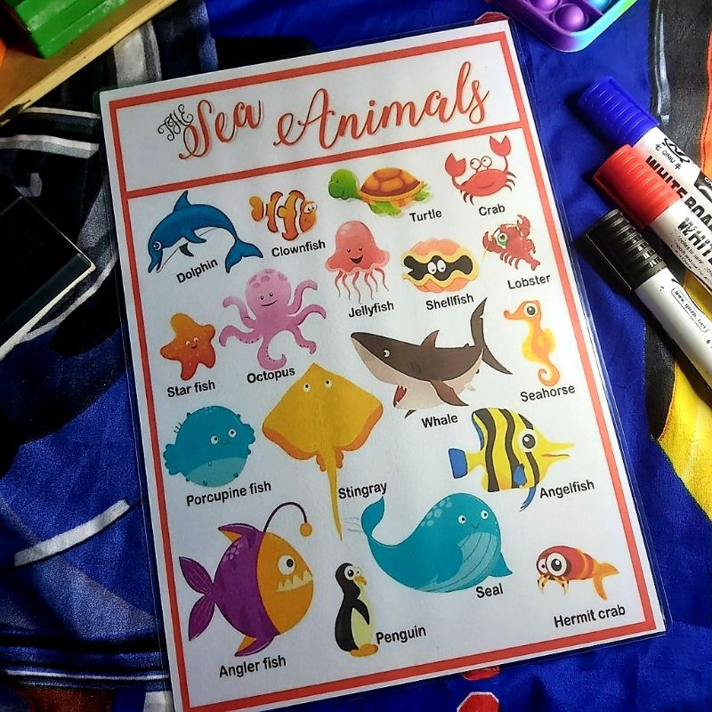 A4 SEA ANIMALS Laminated Educational Wall Chart for kids