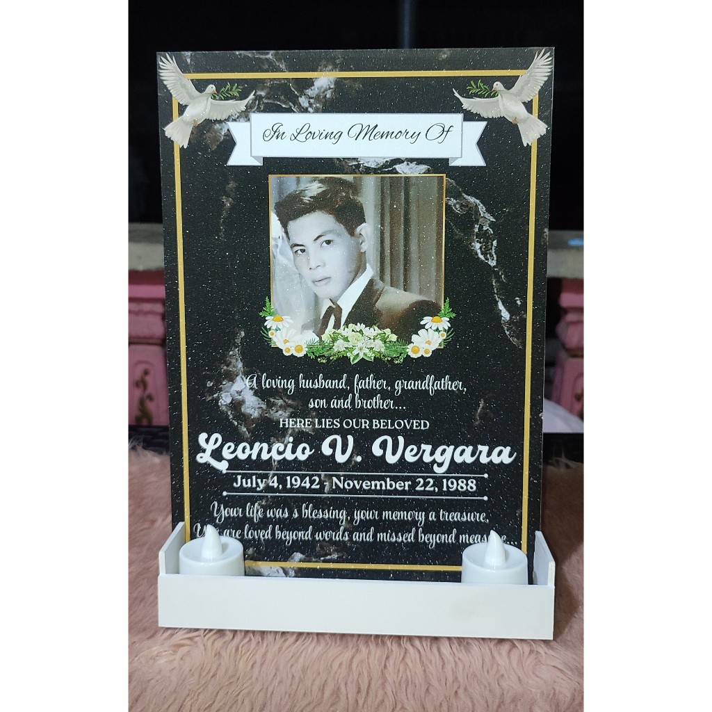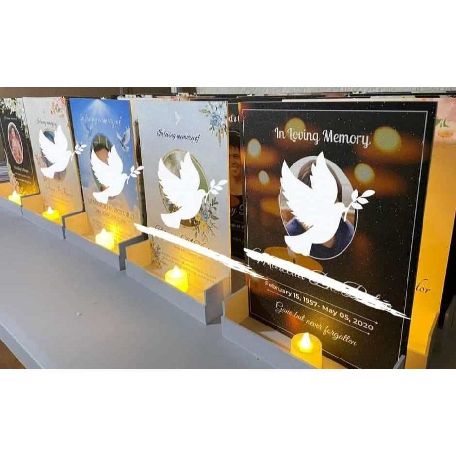 A4 SIZE SINTRA LAPIDA/ MEMORIAL BOARD WITH 2 LED CANDLES