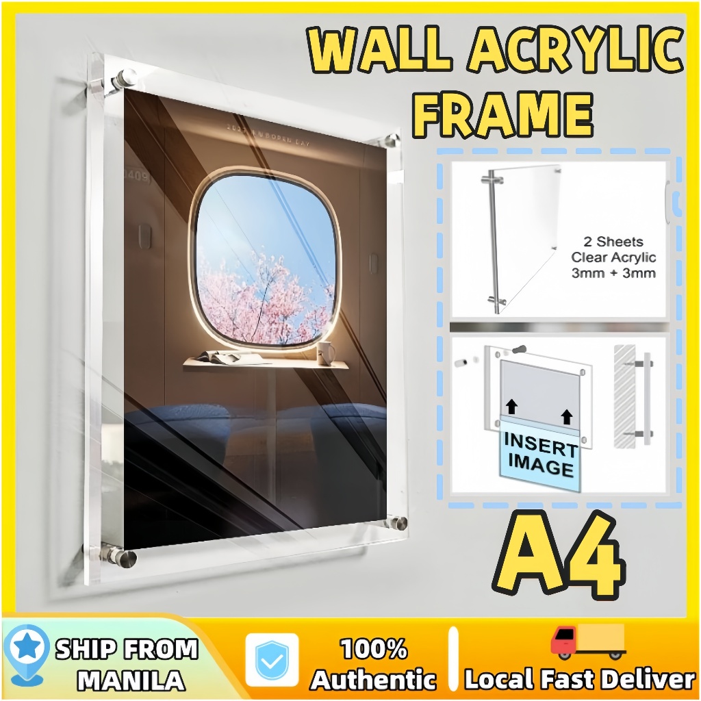 A4 SIZE WALL ACRYLIC FRAME/Acrylic Display Stand/Acrylic Photo Frame/Certificate Document Frame/Wall-Mounted Picture Acrylic Photo Frame3MM+3MM THICKNESS.