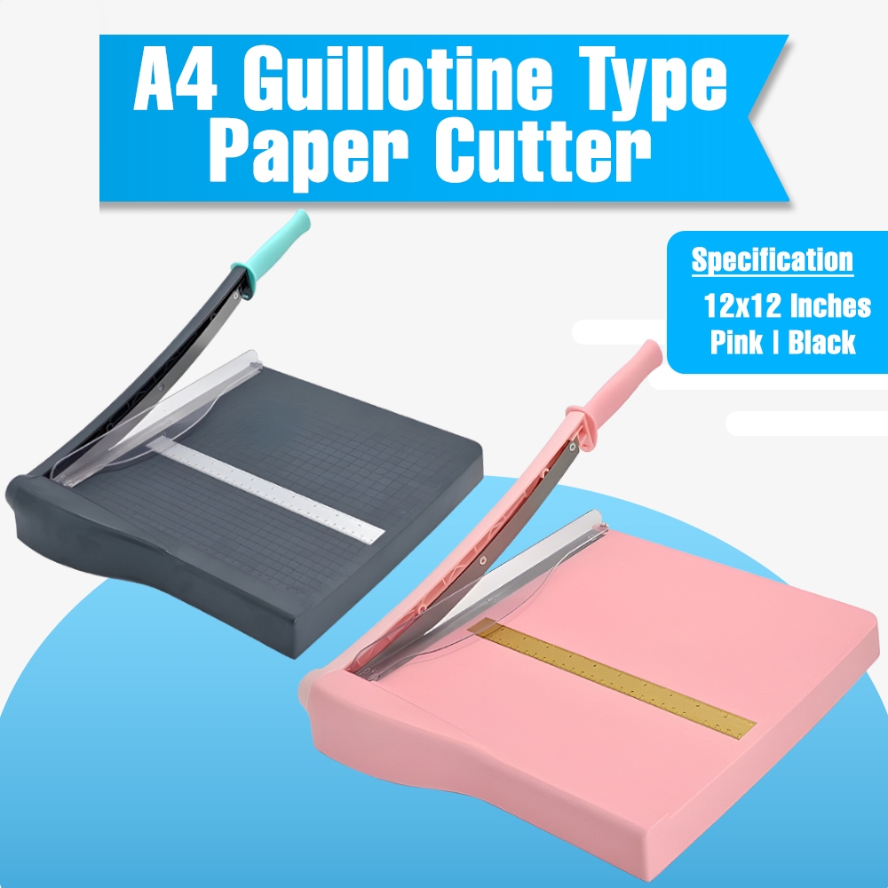 A4 Size Guillotine Type Paper Cutter Pink/Black 12inches Paper Cutter w/ Safety Guard Lock