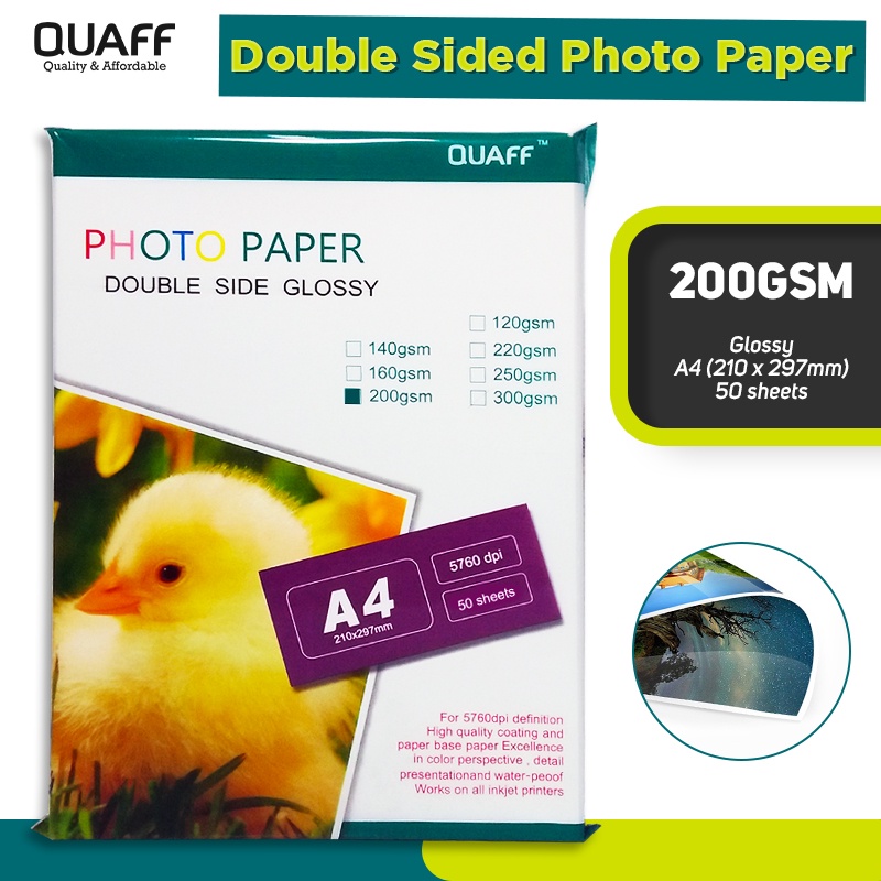A4 Size QUAFF Double Sided Glossy Photo Paper (50 sheets / pack)