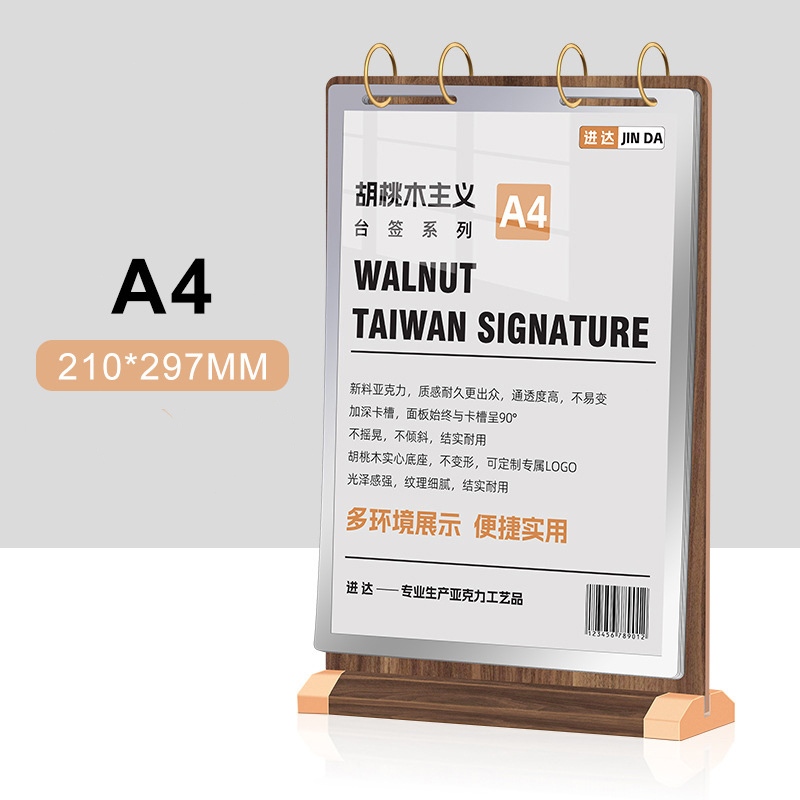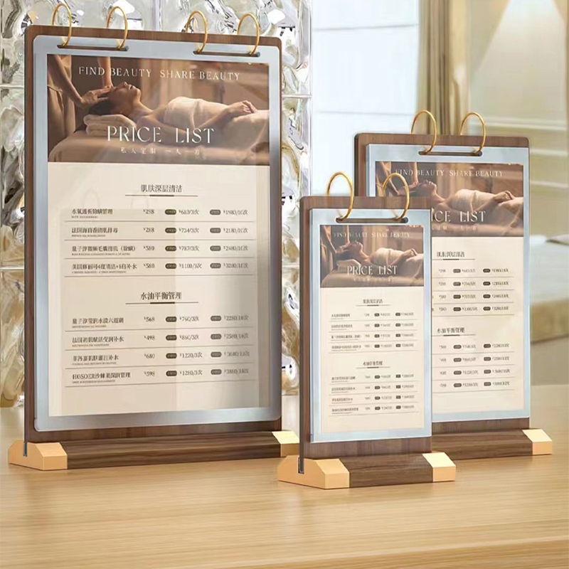 A4 Wooden Restaurant Menu Stand Page Turning Menu Display Stand Menu Recipe Loose-Leaf Billboard
