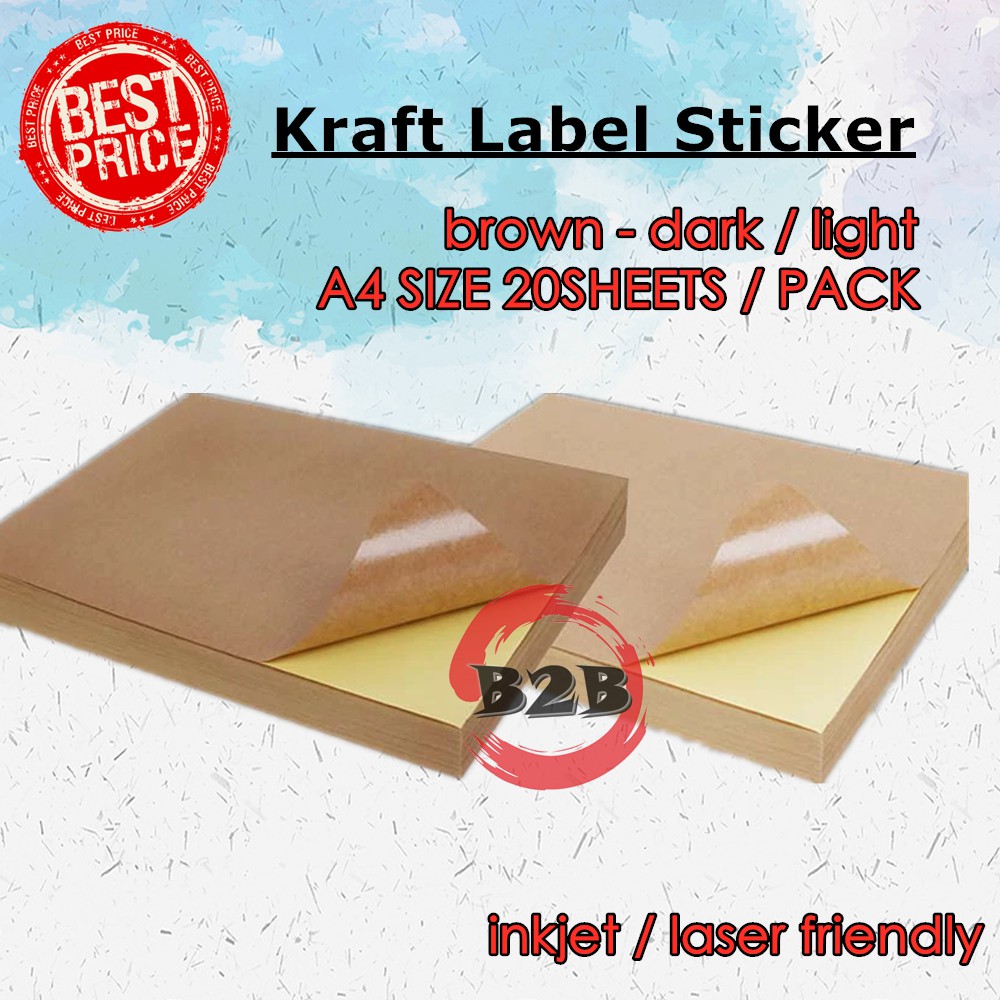 A4 dark & light Adhesive Kraft Brown Paper Sticker Laser Inkjet Printable Paper