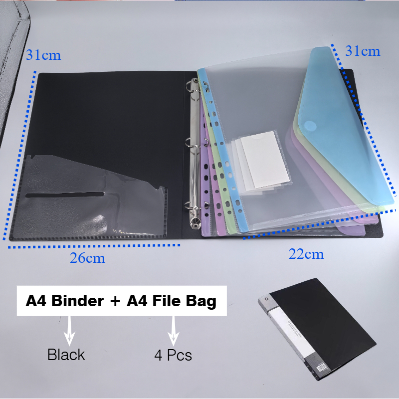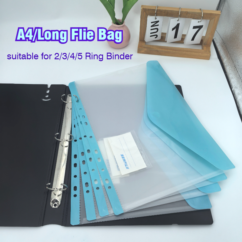 A4/long Loose Leaf Bag File Organizer 11Hole Binder Pouch for 2/3/4 Ring Binder Transparent File Bag