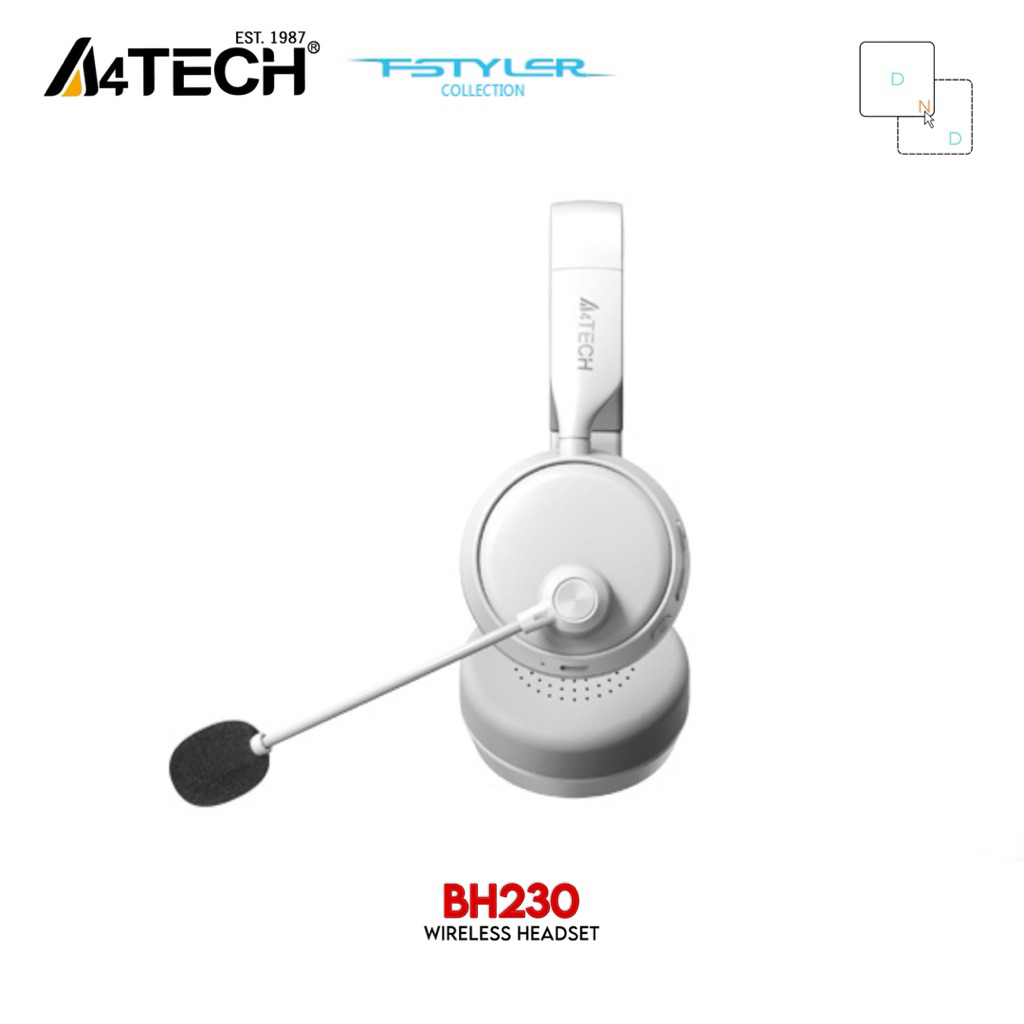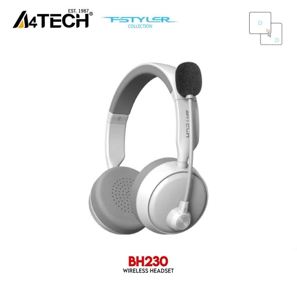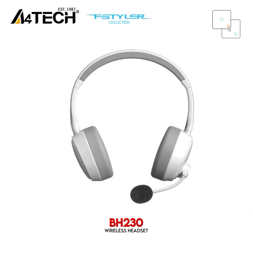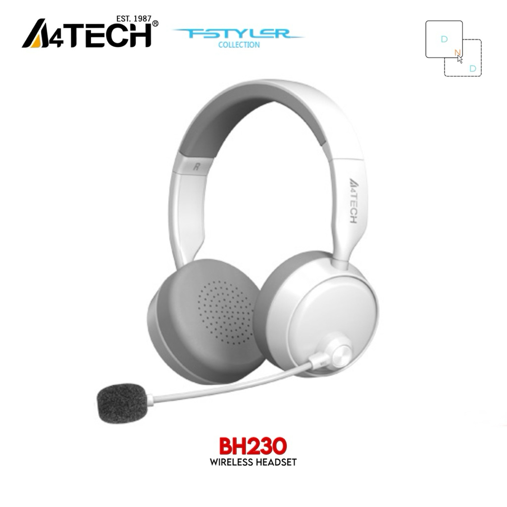 A4TECH BH230 Bluetooth Wireless Headset, Noise Cancelling Microphone w/Mute,Lightweight(Black/White)