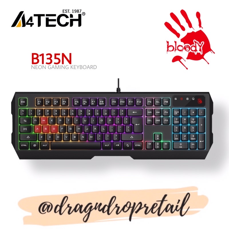 A4TECH BLOODY B135N Neon Gaming Keyboard, 1ms Key Response