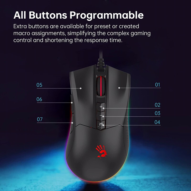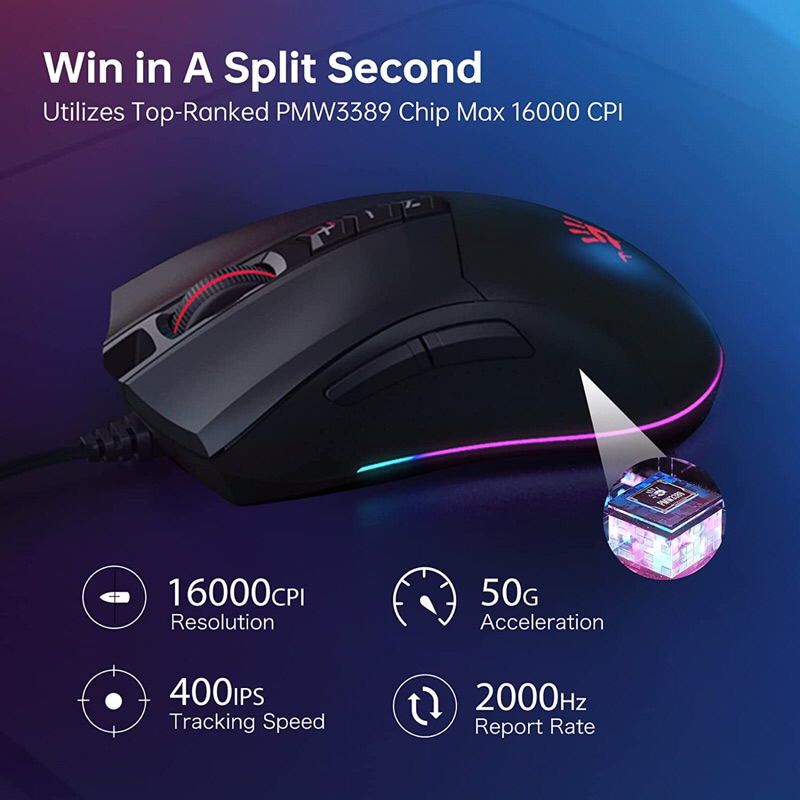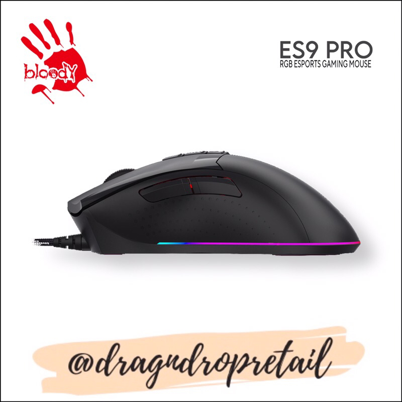 A4TECH BLOODY ES9 Pro FPS RGB Gaming Mouse, 16000 CPI, 2000Hz Report Rate, 400IPS, 4M Onboard Memory