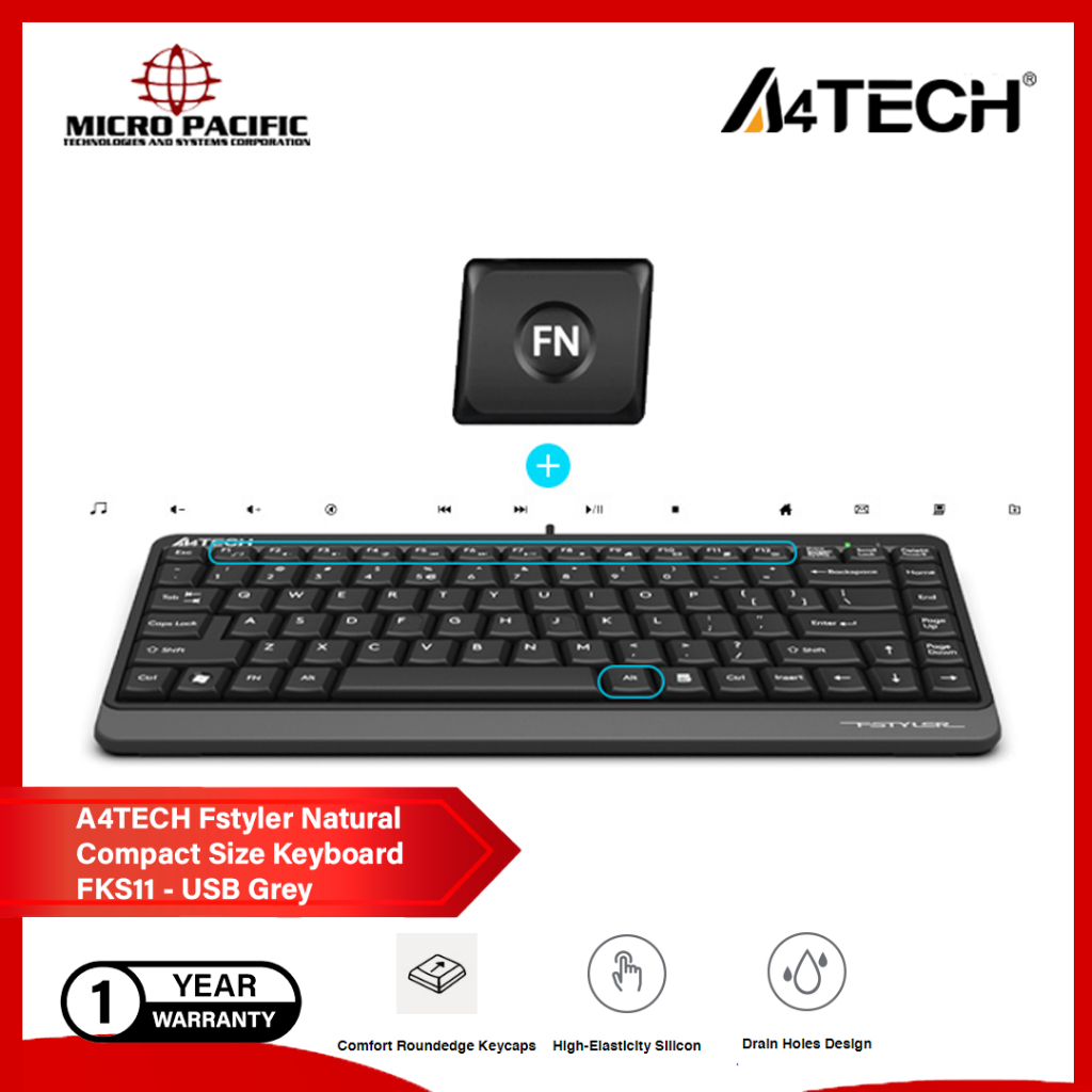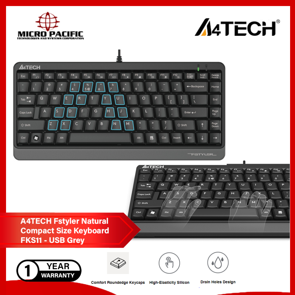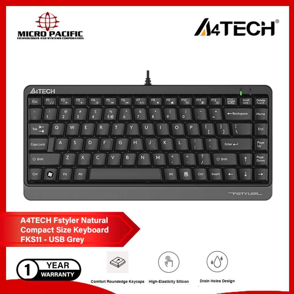 A4TECH FSTYLER FKS11 Natural A Compact Keyboard USB Wired Mini KB - Grey