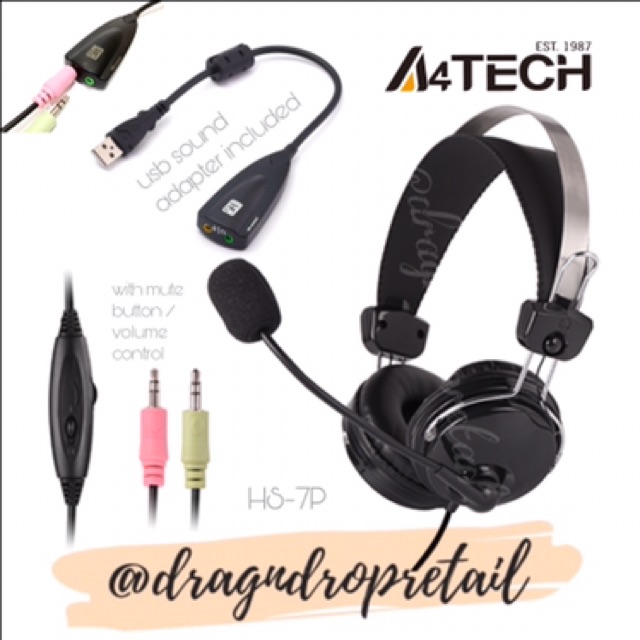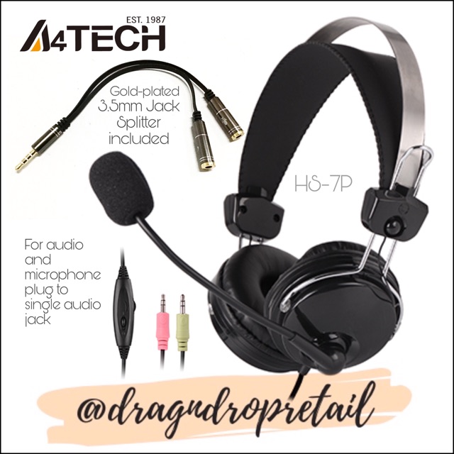A4TECH HS-7P ComfortFit Stereo Headset 3.5mm jack (Audio & Mic) Headphone with Noise Cancelling Mic