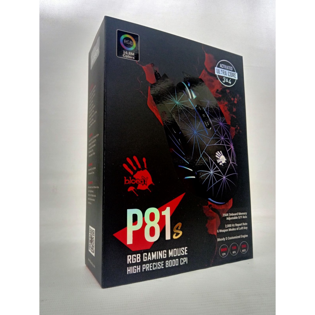 A4Tech Bloody Gaming Mouse P81s RGB Fast Response Click Light Strike Technology High Quality