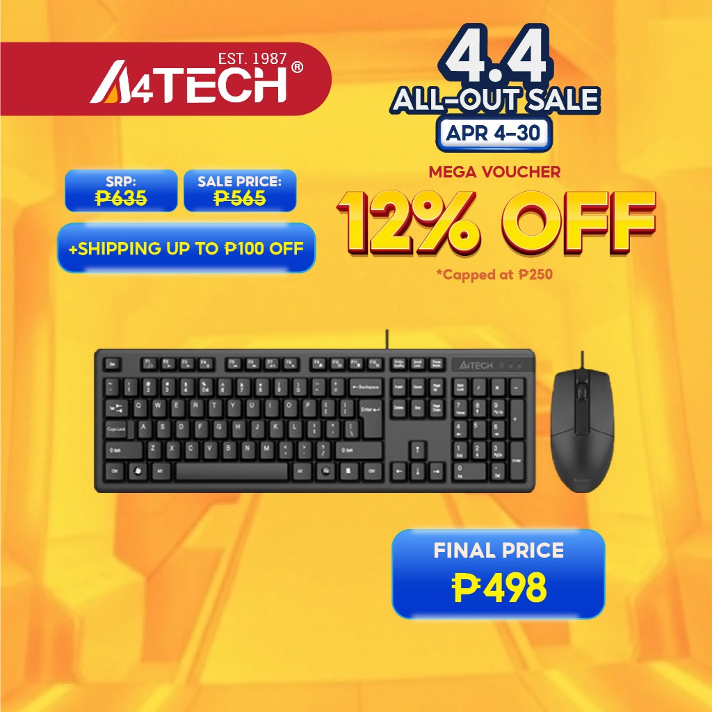 A4Tech KK-3330 Multimedia FN Laser Inscribed Keys Desktop Wired Keyboard and Mouse Combo