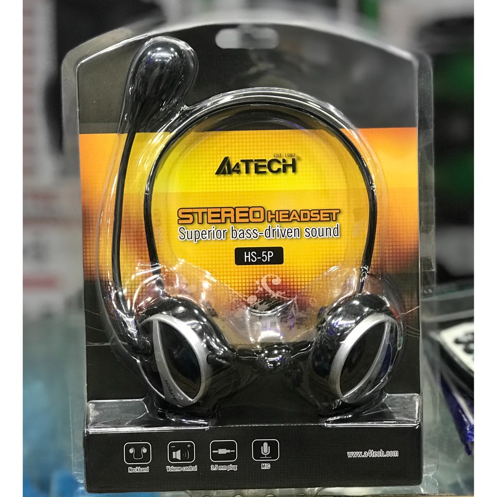 A4Tech Stereo Headset Superior Bass-Driven Sound HS-5P. Omnidirectional noise-cancelling microphone