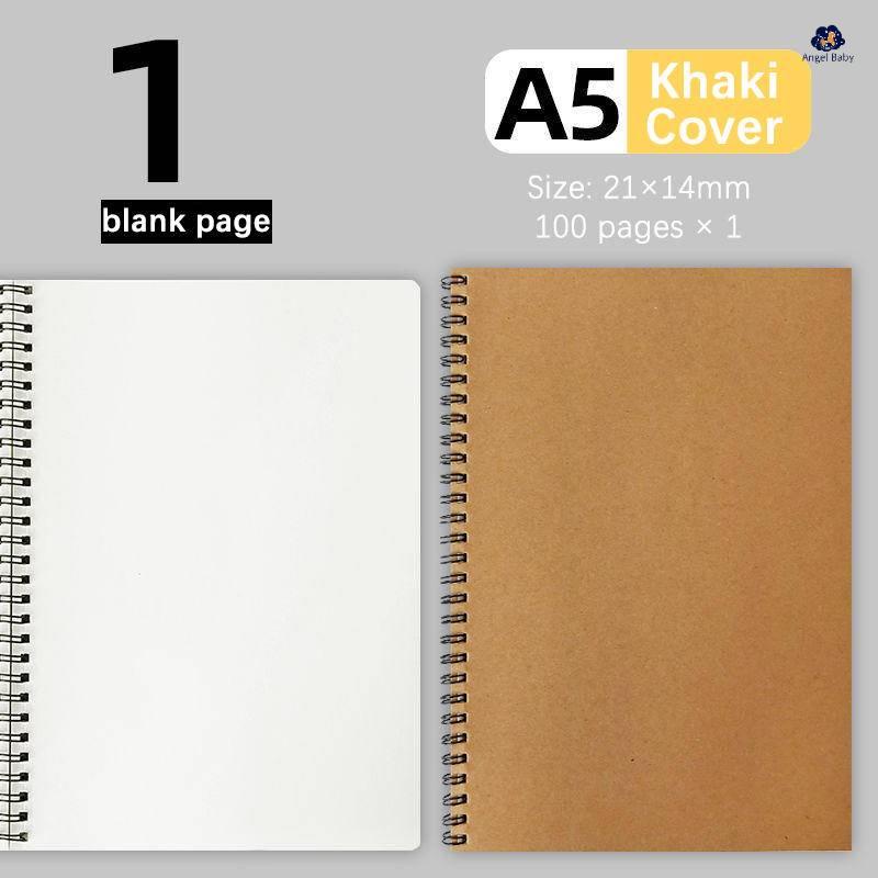 A5/100 Pages Spiral Notebooks Kraft Black Cover Blank Notebook Sketchbook Drawing Book Spiral Book