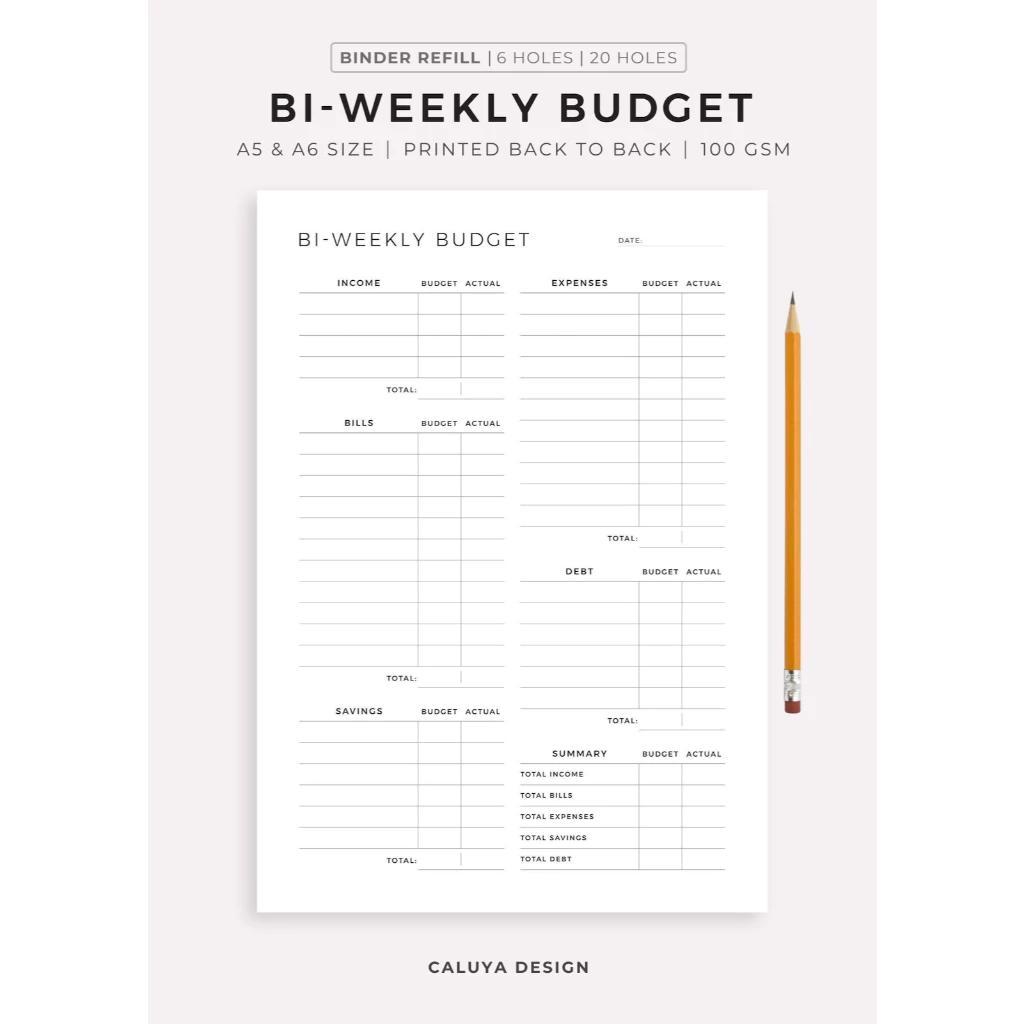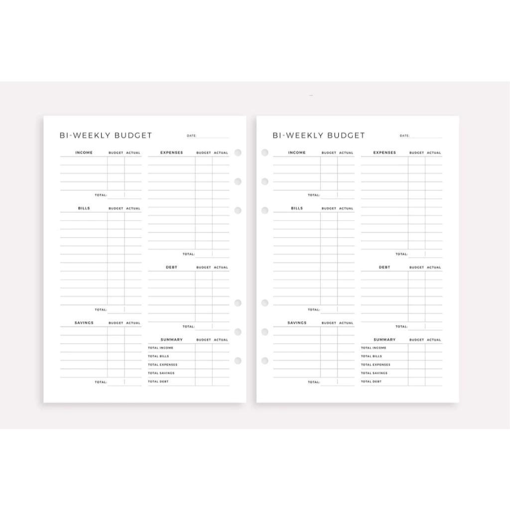 A5 A6 Bi-Weekly Budget Planner Binder Refill | A5 Binder Notebook Refill Pages | Notebook Binder Ins