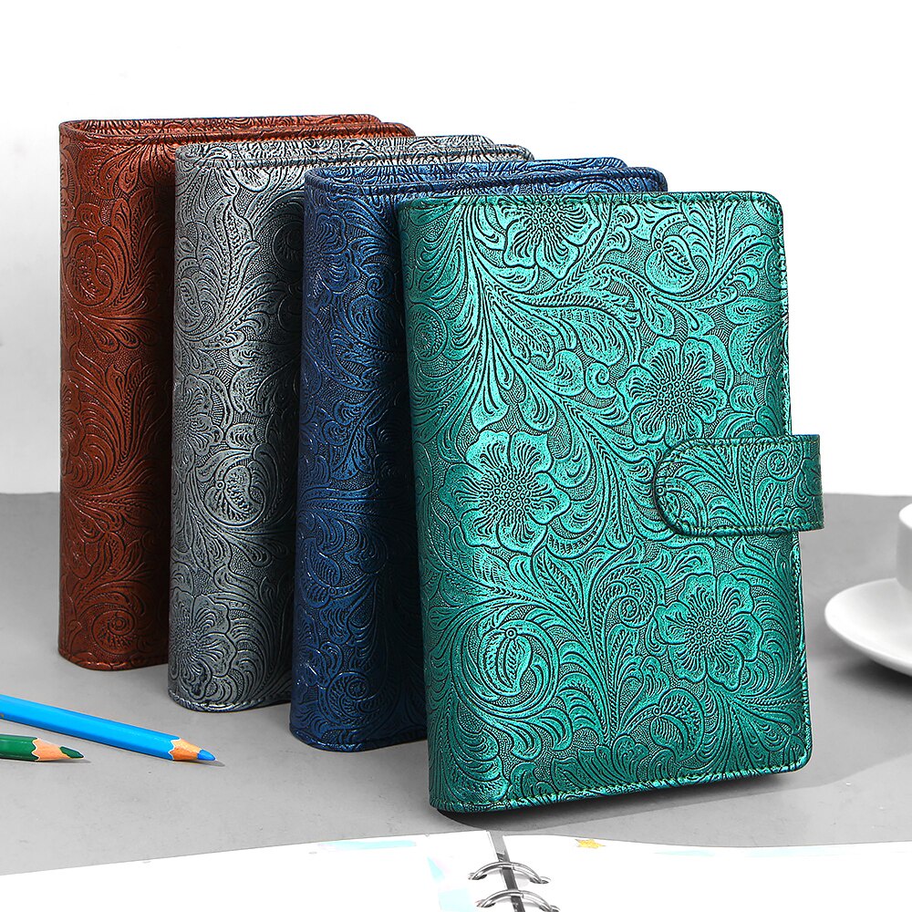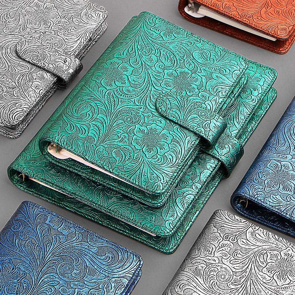A5 A6 Notebook Cover Metal Color 6 Ring Binder PU Clip-on Notebooks Leather Loose Leaf Journal School Supplies Stationery