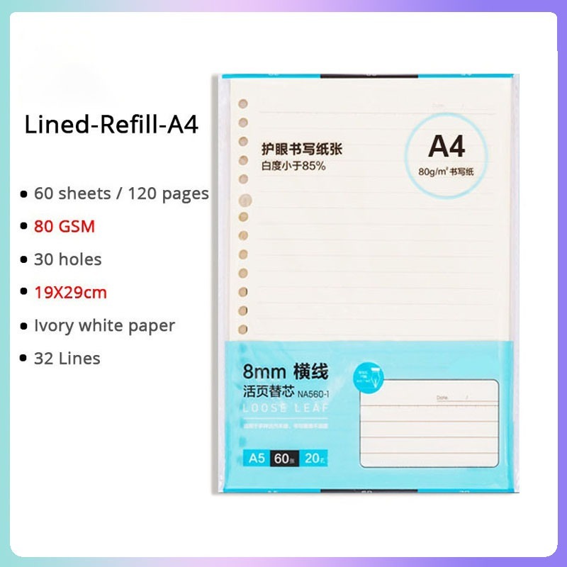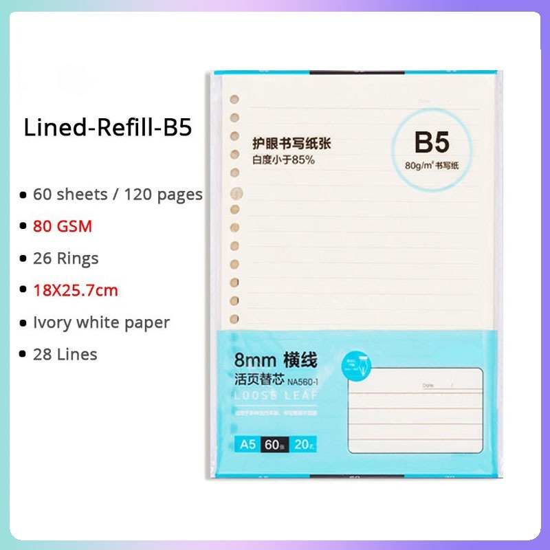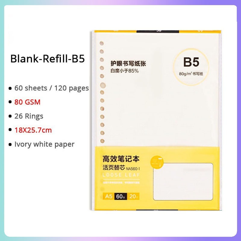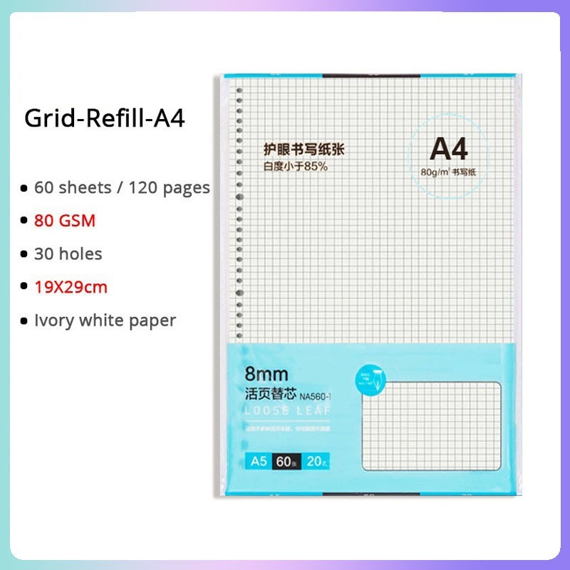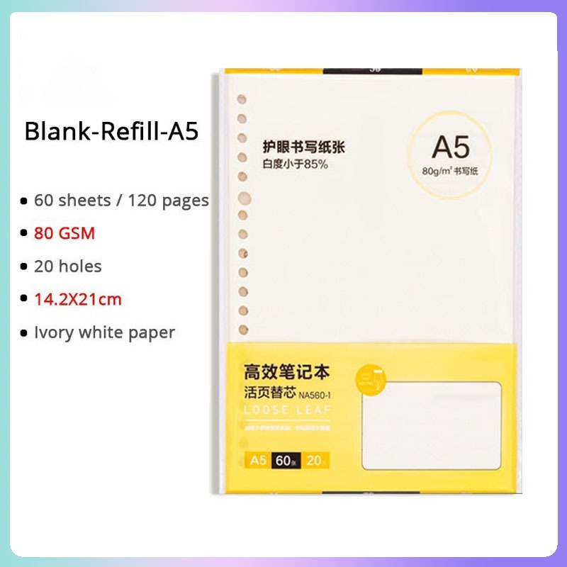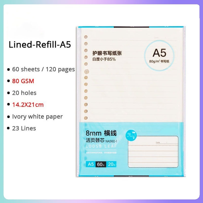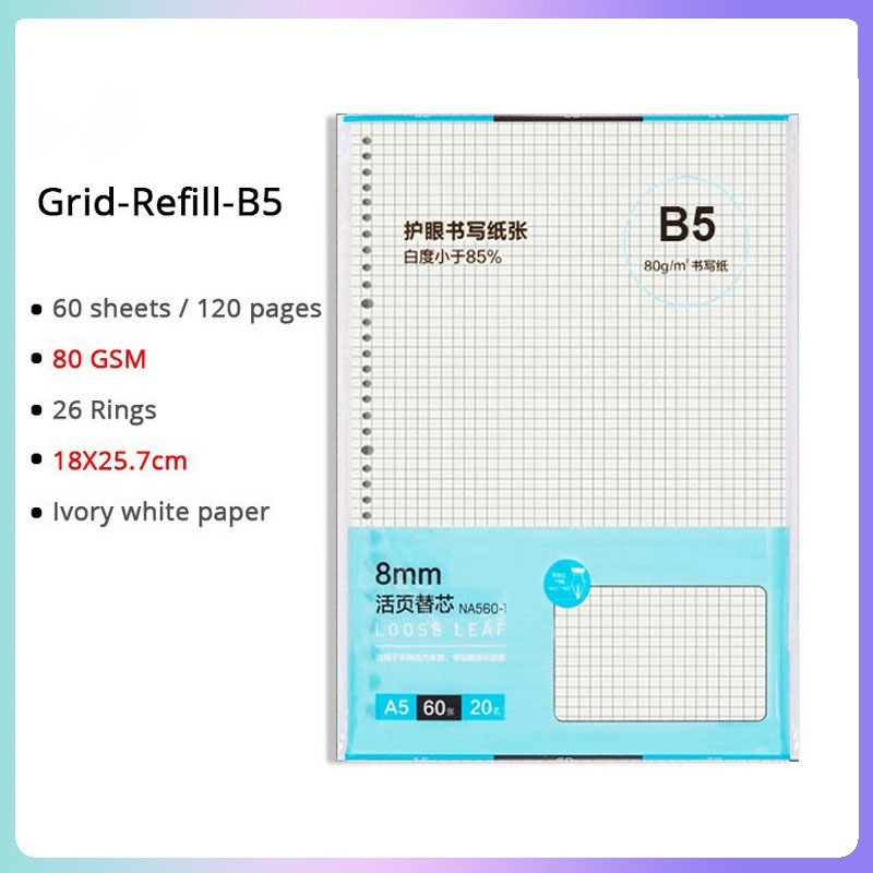 A5/B5/A4 Loose Leaf Notebook Refill Spiral Binder Inner Page Notepad Paper School Supplies Replacement