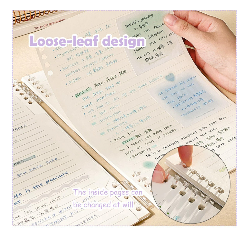 A5/B5 Spiral Notebook Binder Refill refillable Loose Leaf 60 Leaves Hard Cover Waterproof Notepad