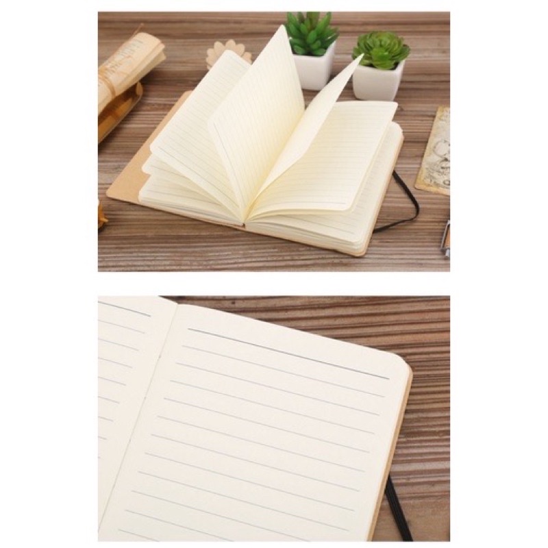 A5 Kraft Notebook Line Grid HardBand Strap w/ Garter Notepad Notes (Pen not included)