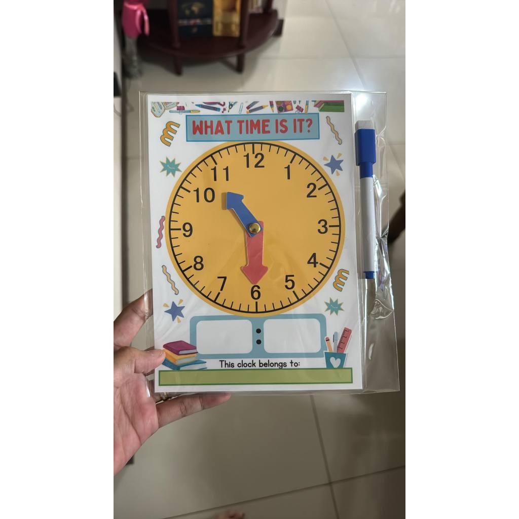 A5 Laminated Clock for Kids Educational Clock Telling Time Clock for Kids Toy Clock with FREE Marker