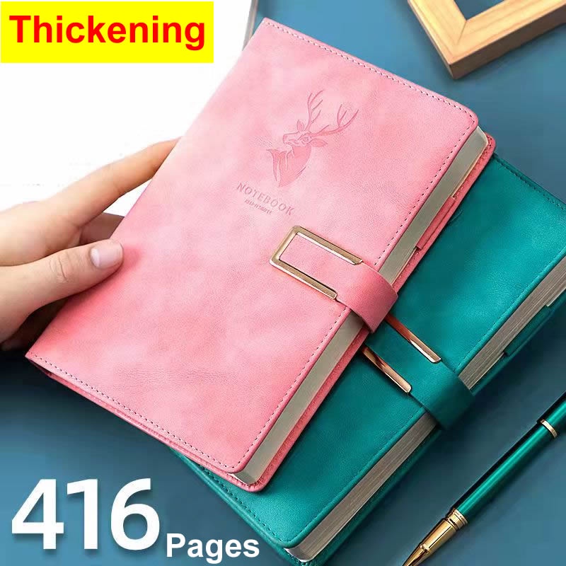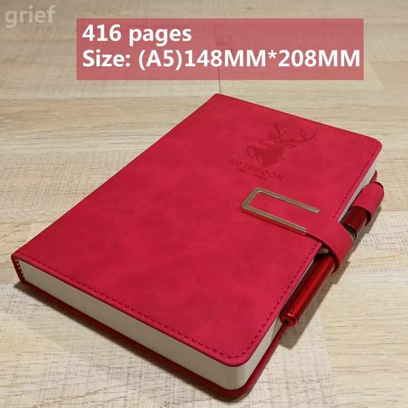 A5 Leather Notebook with pen Magnetic Snap Side College Office Writing Notebook ( 416 Pages )