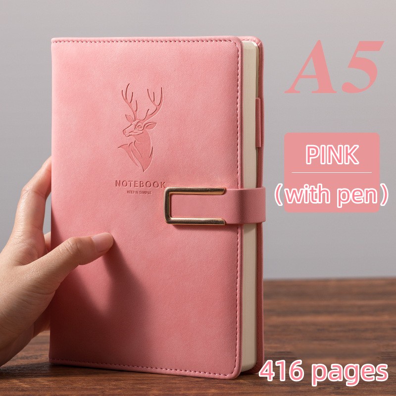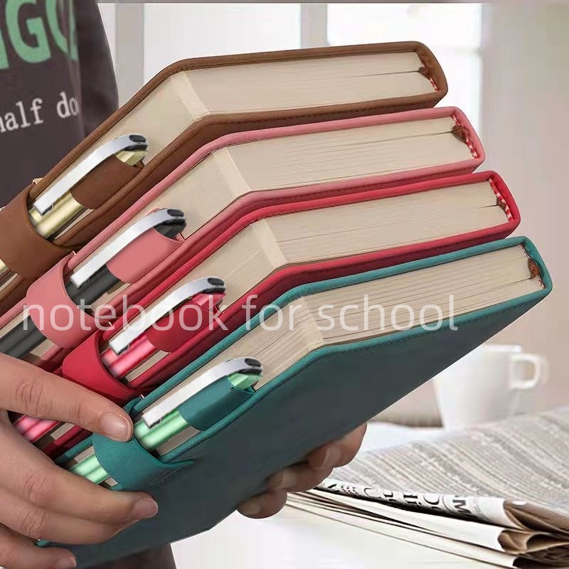 A5 Leather notebook with pen 416 Pages paper notepad big Thick cute college Notebook school supplies