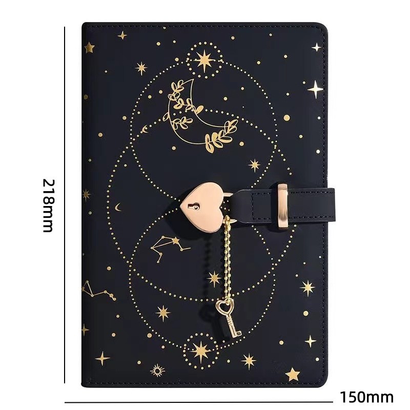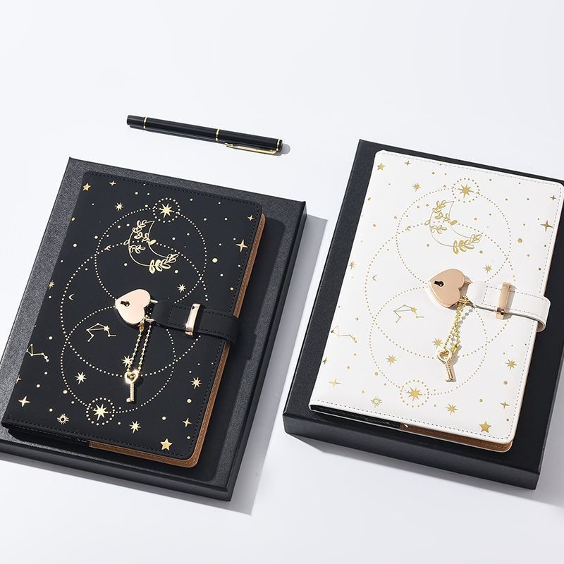 A5 Password Notebook Thickened Notepad Creative Heart Shaped Key Lock Chain Cute Girl Love Lock Diar