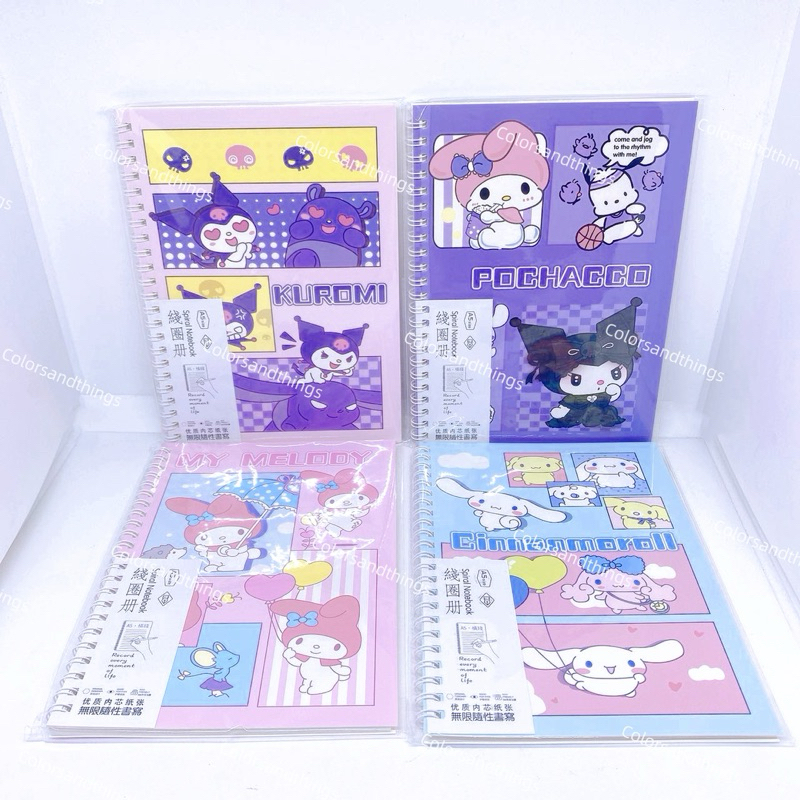 A5 Sanrio Coil Lined Notebook Featuring Kuromi, My Melody, Hello Kitty, Cinnamoroll Notebook