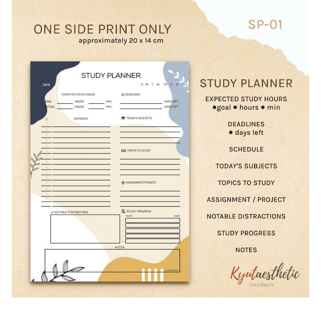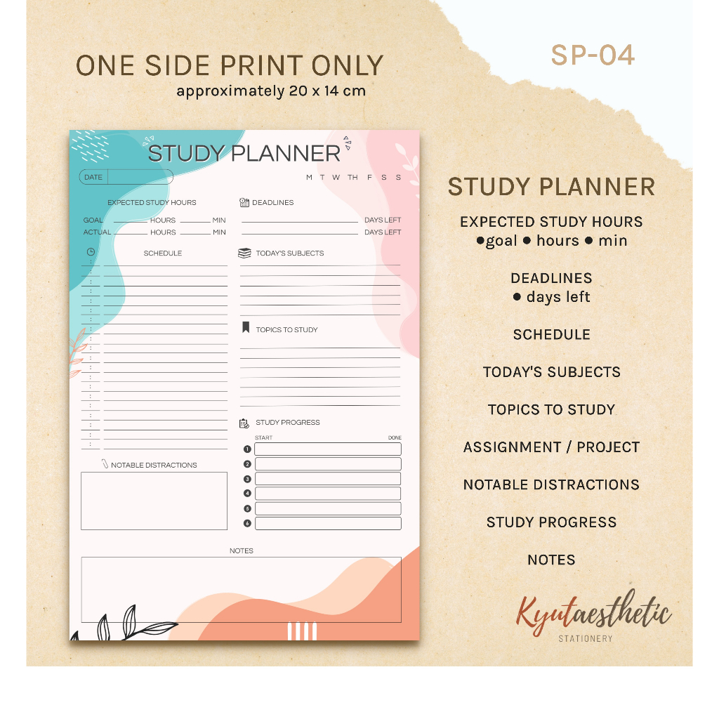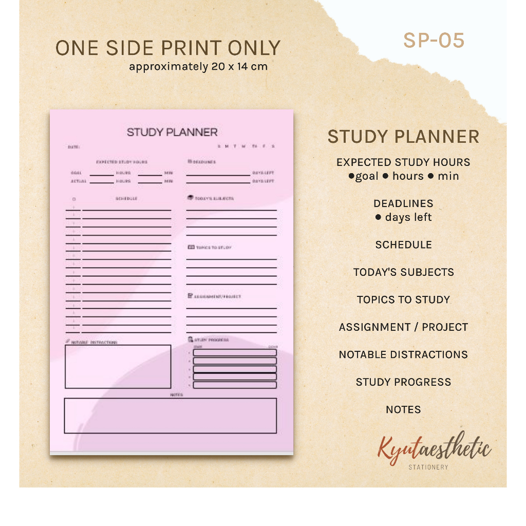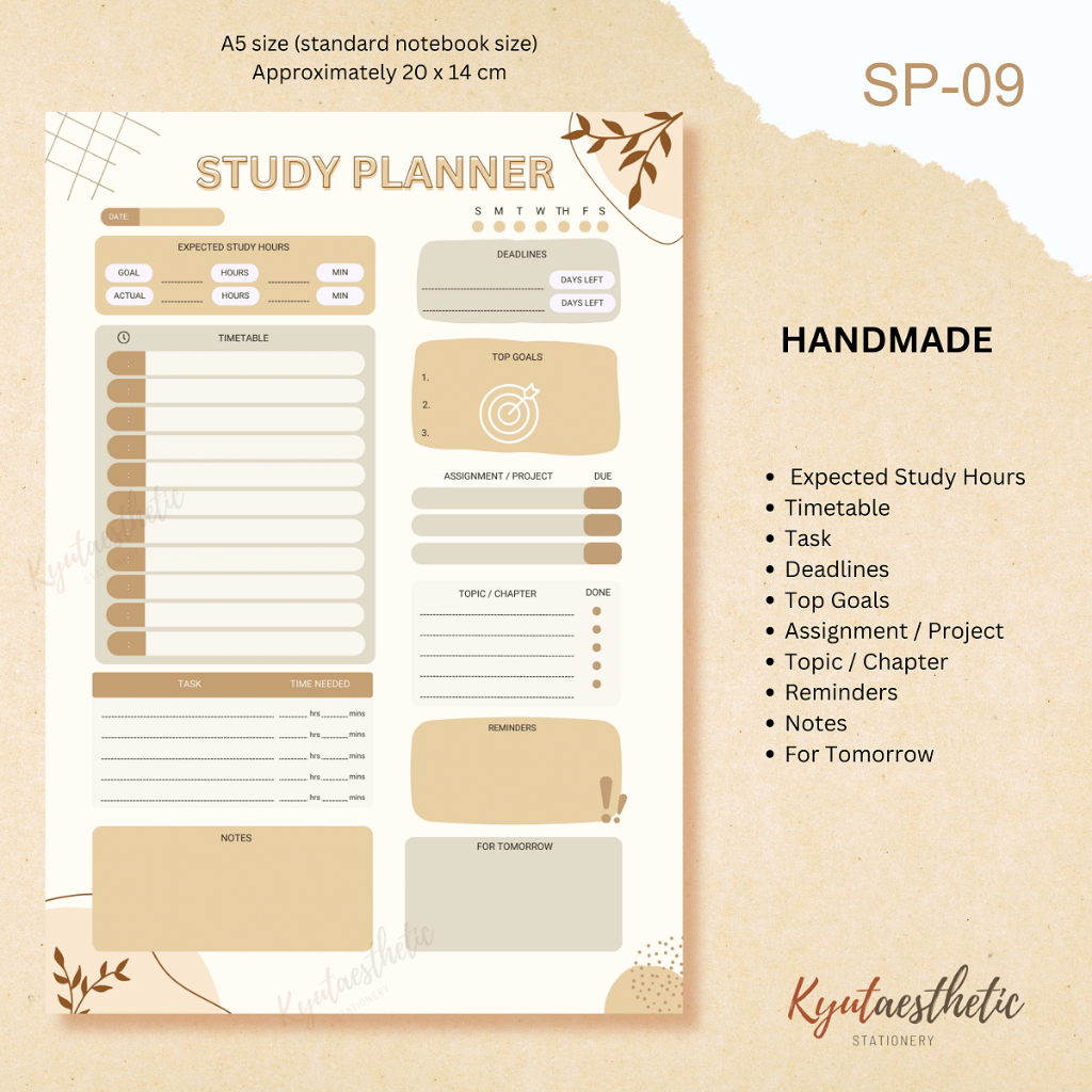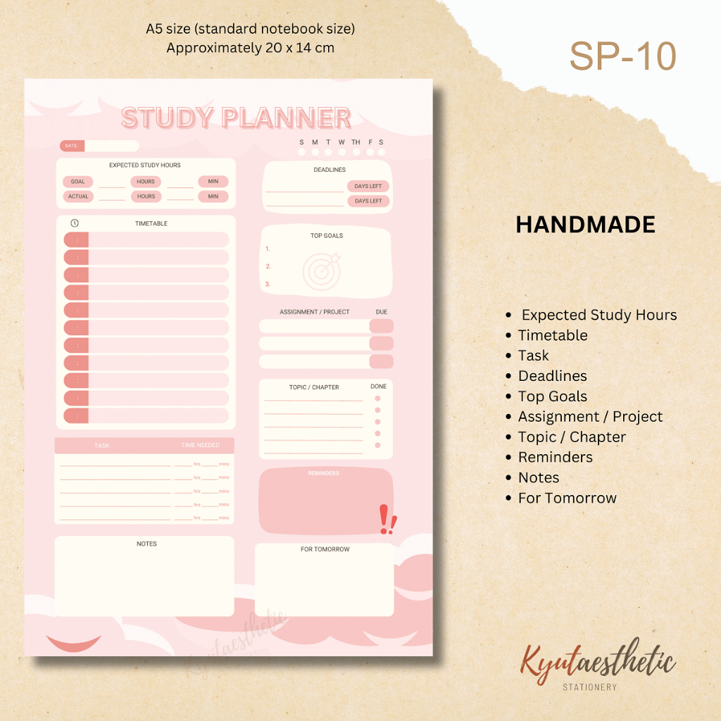 A5 Study Planner Notepad For Students School To Do List Assignment (Non Sticky)