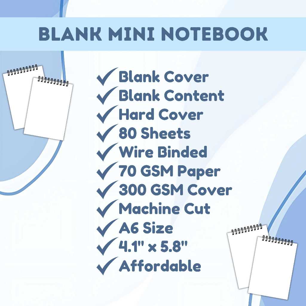 A6 Size Blank/Empty Mini Booklet & Notebook 80 Leaves (One Piece)