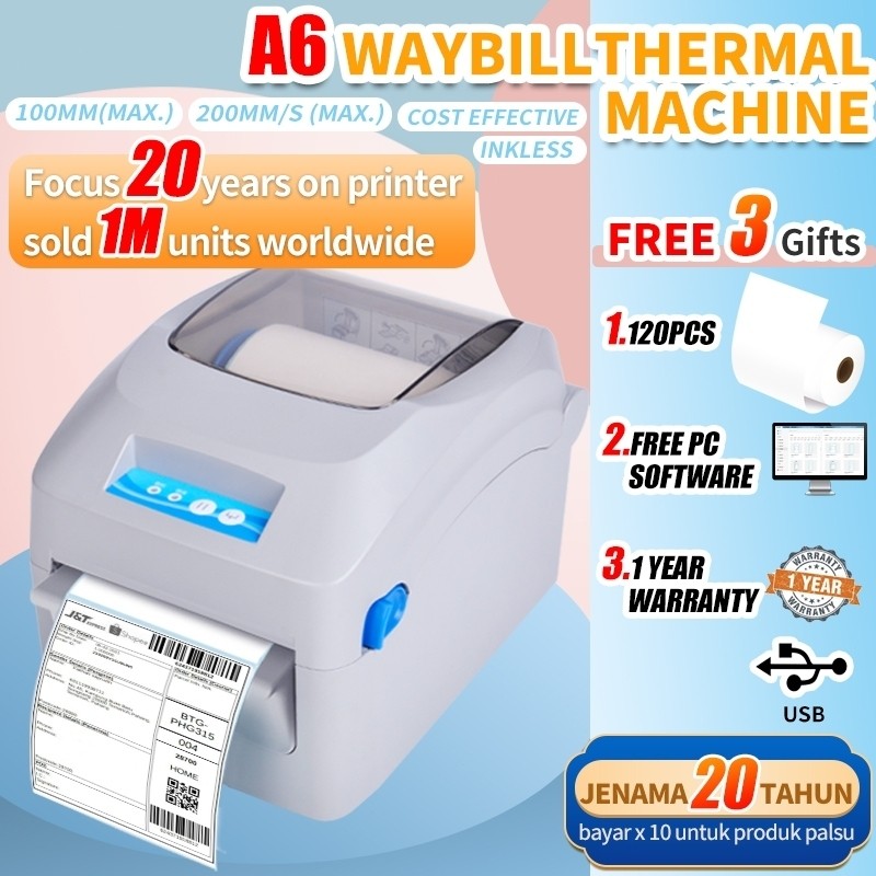 A6 Thermal Printer Bluetooth Printer Shipping Sheet Barcode Express Label Freight Receipt AWB Air Transport List Express Sheet Printer