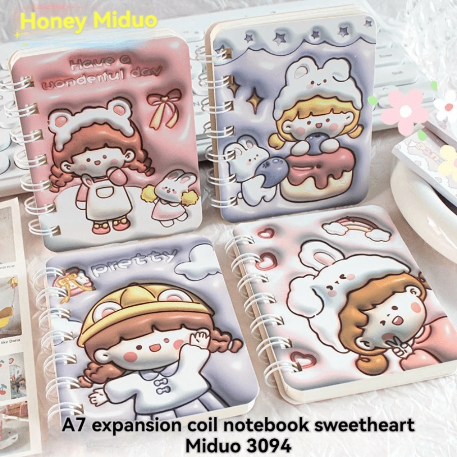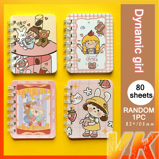 A7 Cartoon Coil Notepad Flip Mini Cute Spiral Notebook Ins Style Aesthetic School Supplies Planner