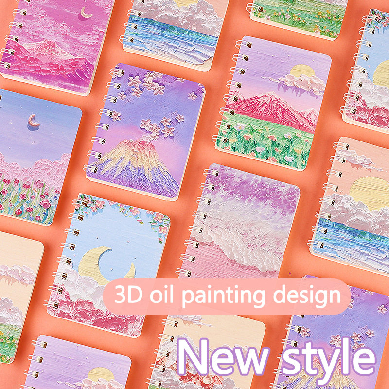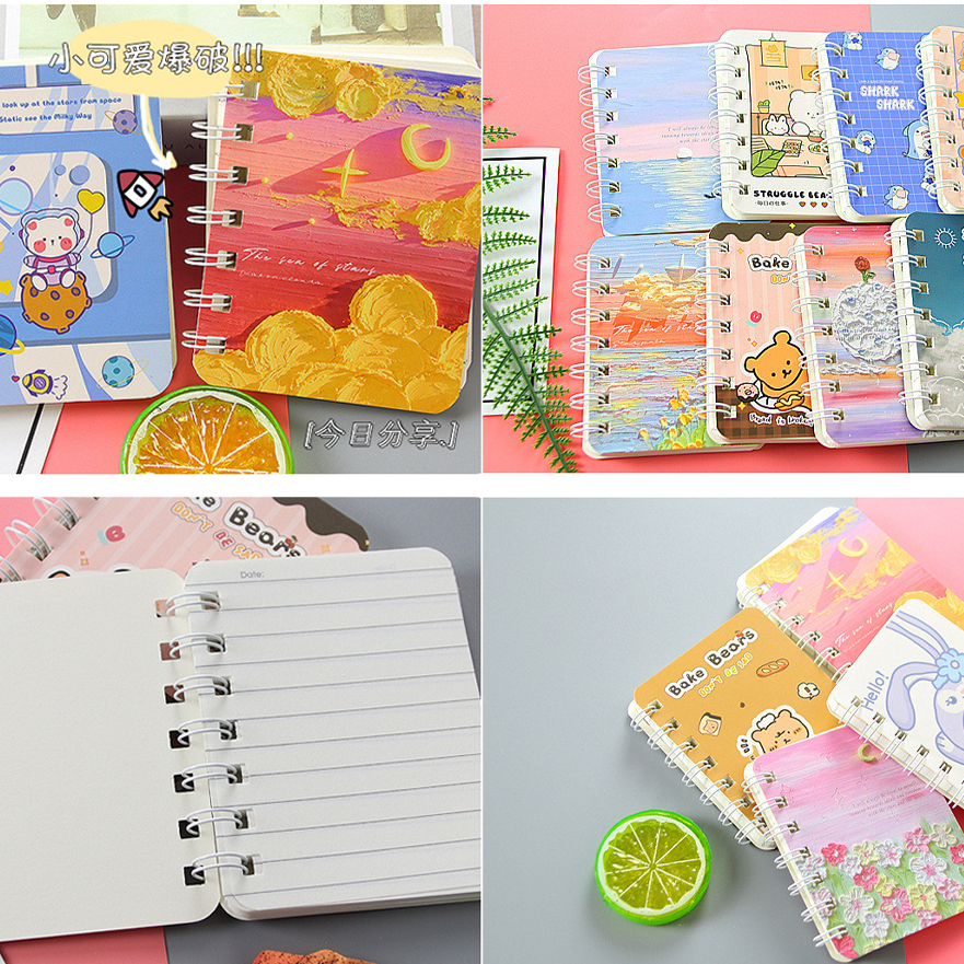 A7 mini diary book 80 Sheets Cute Spiral Notebook Cartoon Diary oil painting book Coil book