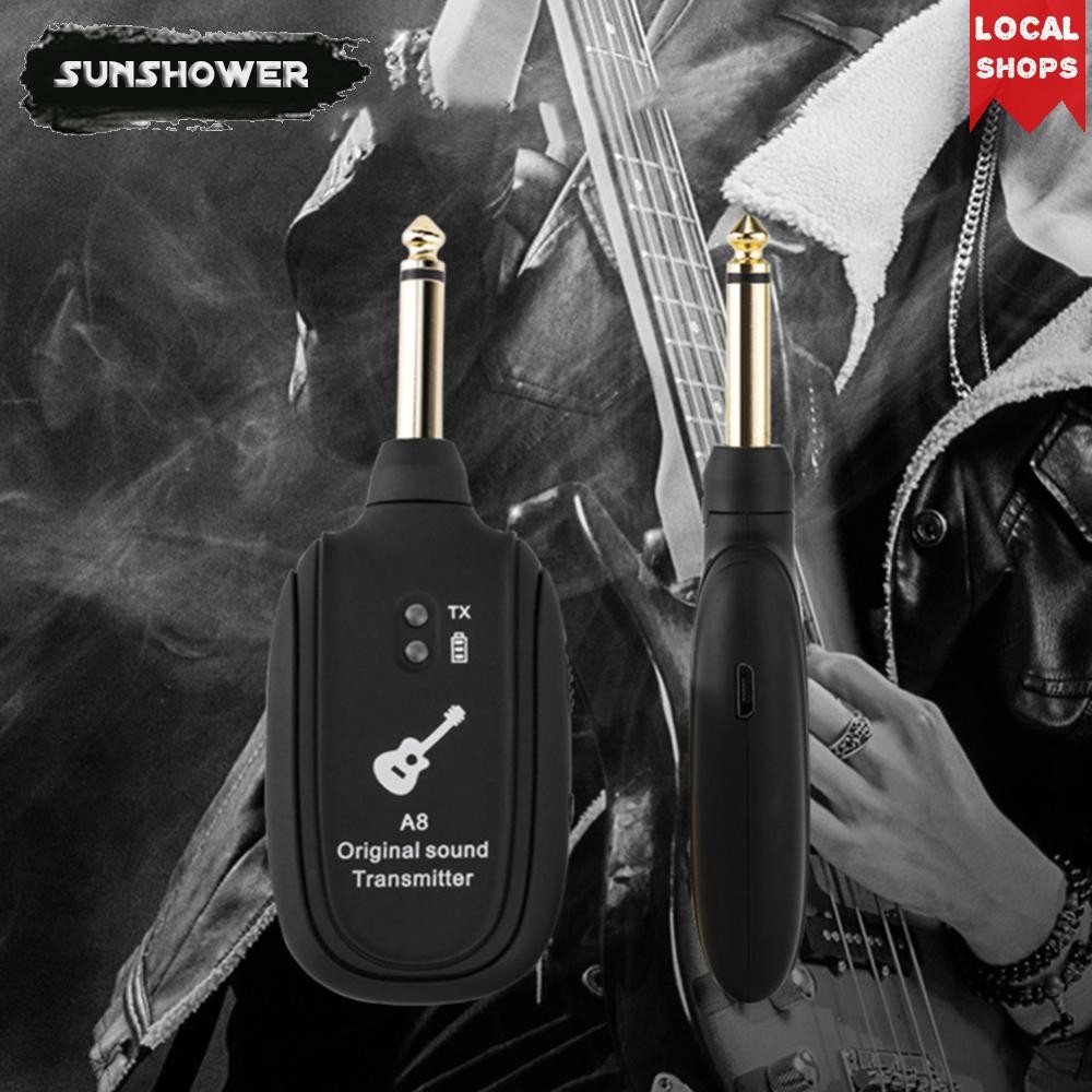A8 UHF Wireless System Guitar Pickup Audio Transmitter Receiver for Electric Guitar Bass Violin Parts Built-In Rechargeable Battery