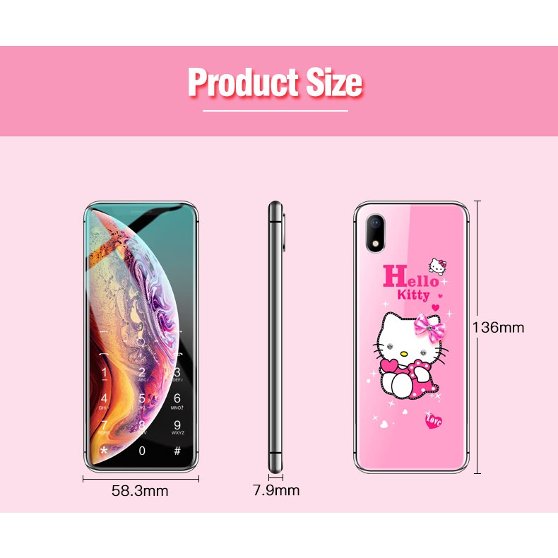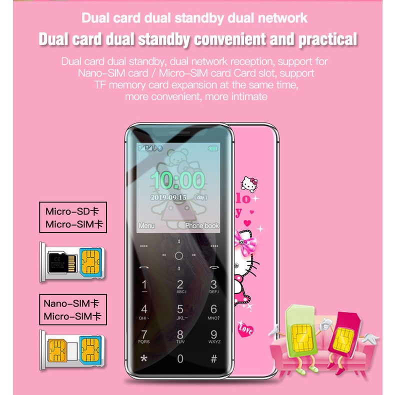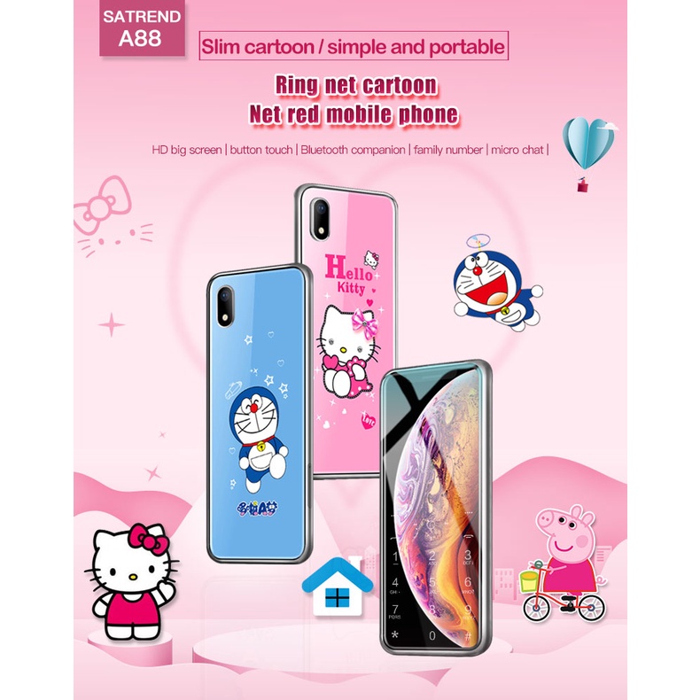 A88 GSM Quad Band Dual Sim Mini Phone Cartoon Designs Hello Kitty Bar Mobile Phone with Touch Screen Camera MP3