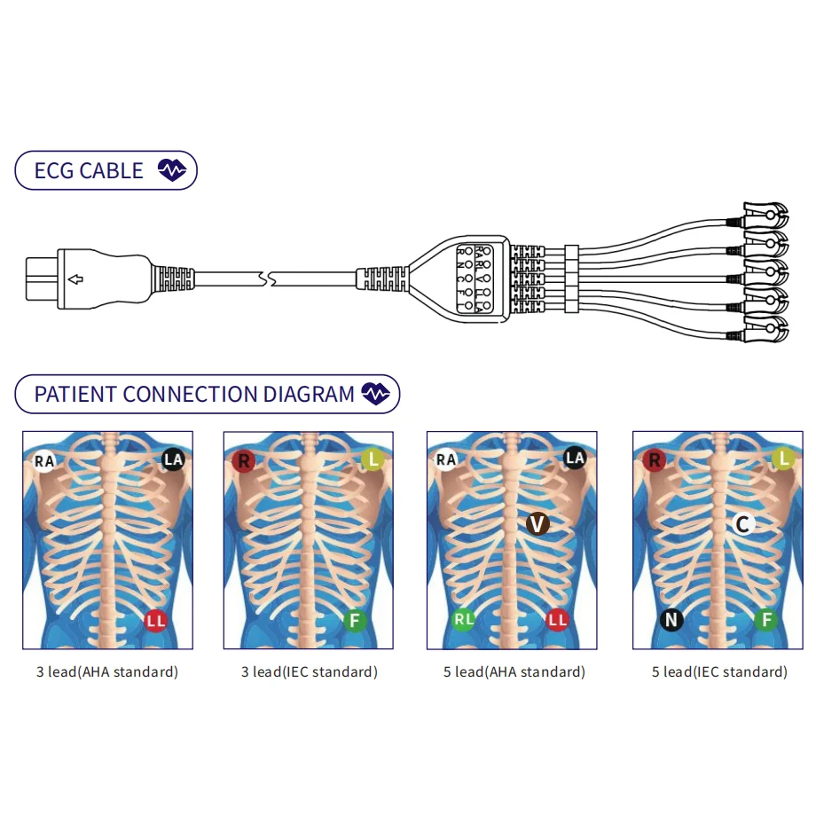 Compatible for MINDRAY MEC1000/2000,PM7000/8000/9000 Patient Monitor ECG Cable ECG Cable leadwires
