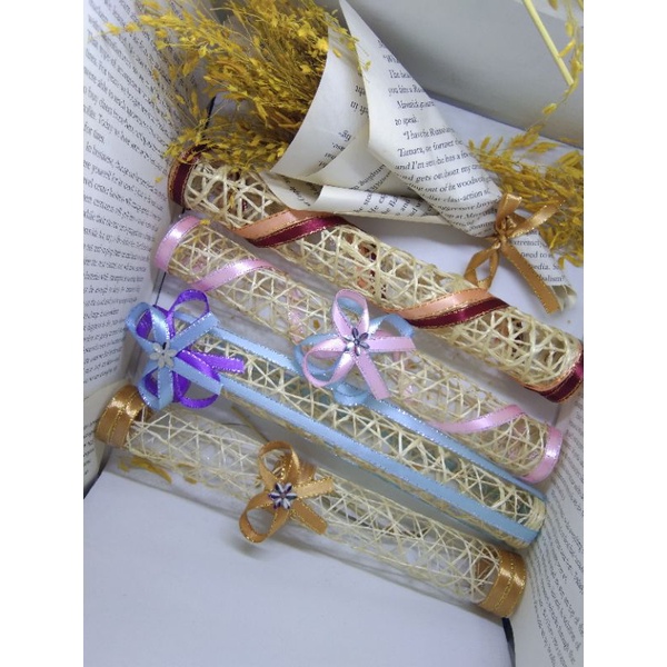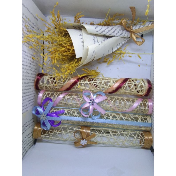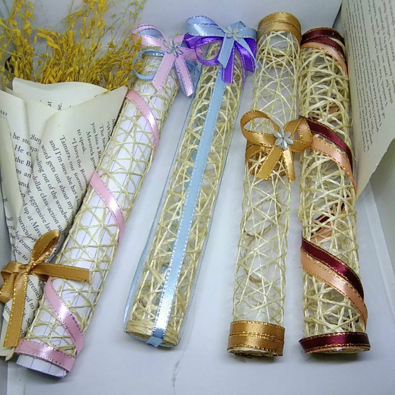 ABACA Tube Roll With Ready Made Ribbon Design For Wedding Gifts Souvenirs Giveaways Invitation