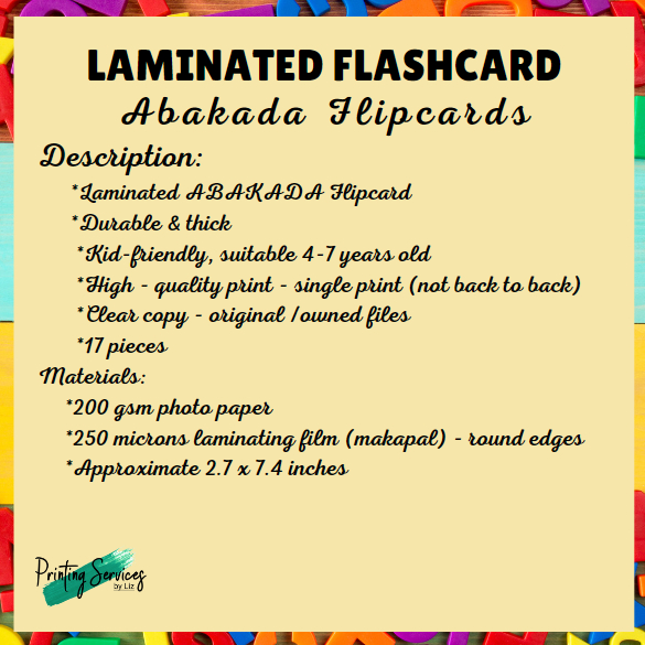 ABAKADA FLIPCARD LAMINATED : PAGBASA NG ABAKADA : ABAKADA