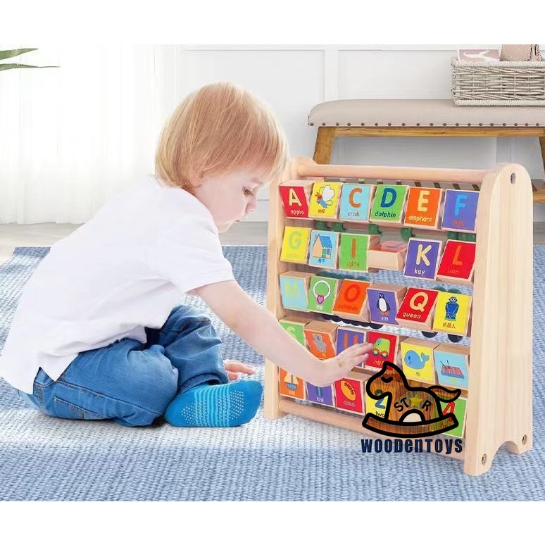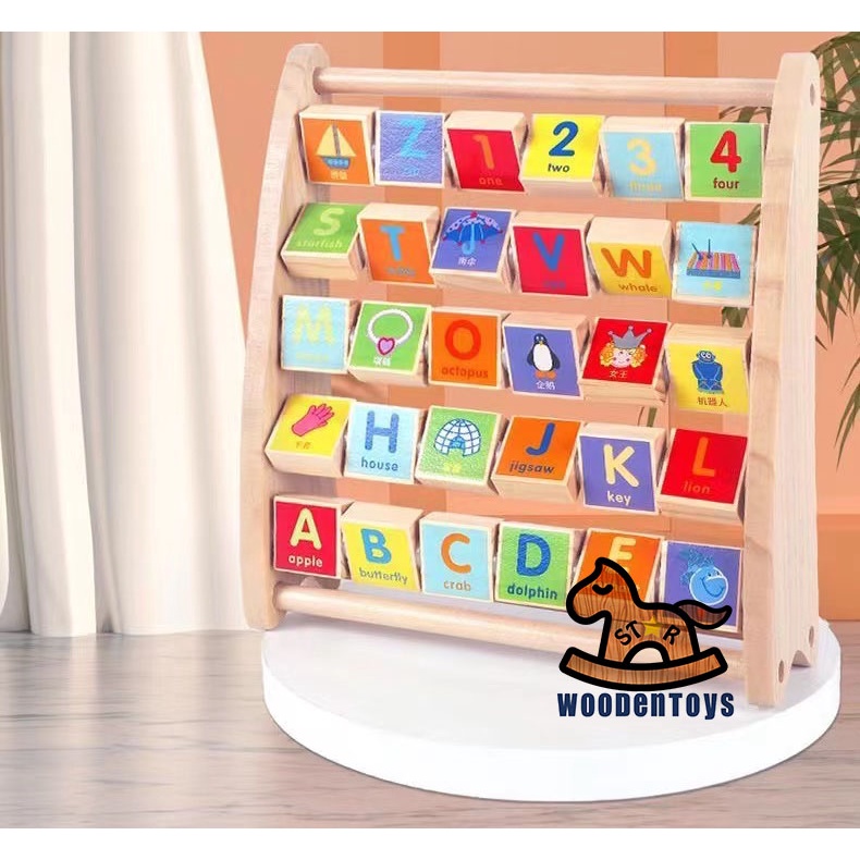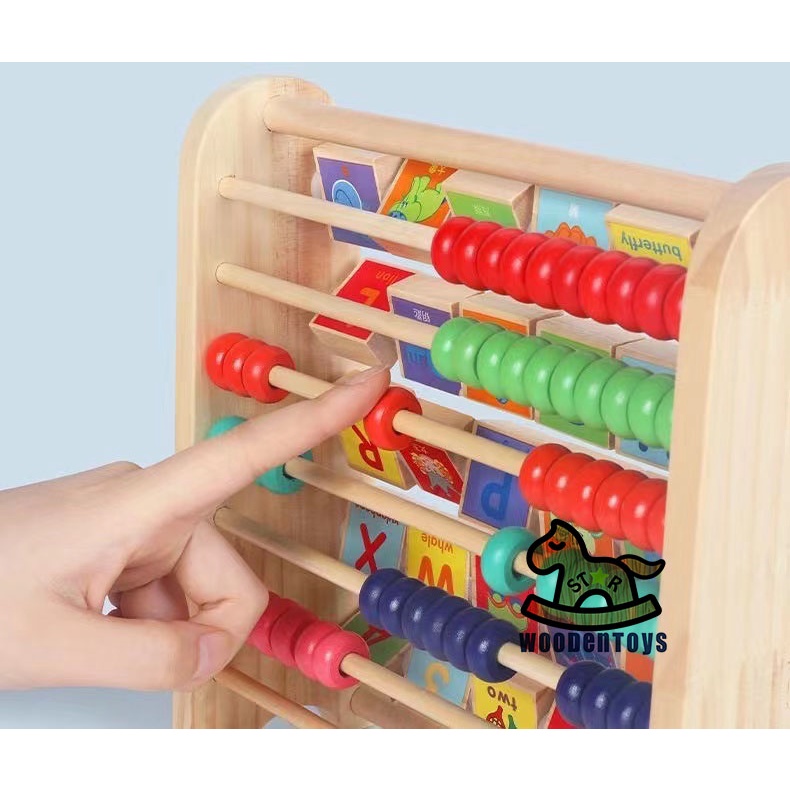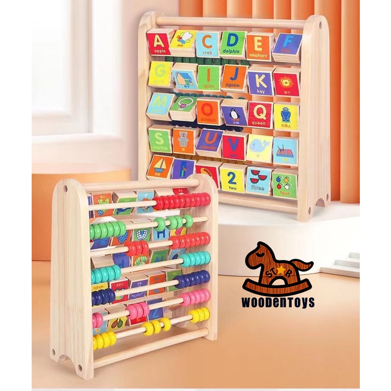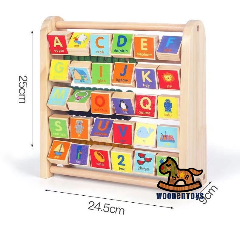 ABC-123 Learning Abacus Toy - Math Manipulatives Numbers Counting Bead and ABC Blocks