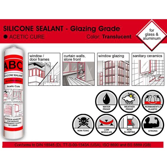 ABC Silicone Sealant Glazing Grade 300ml Acetic Cure