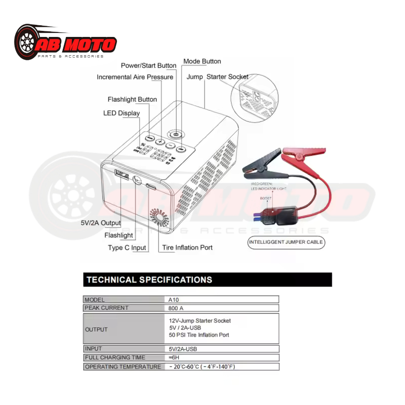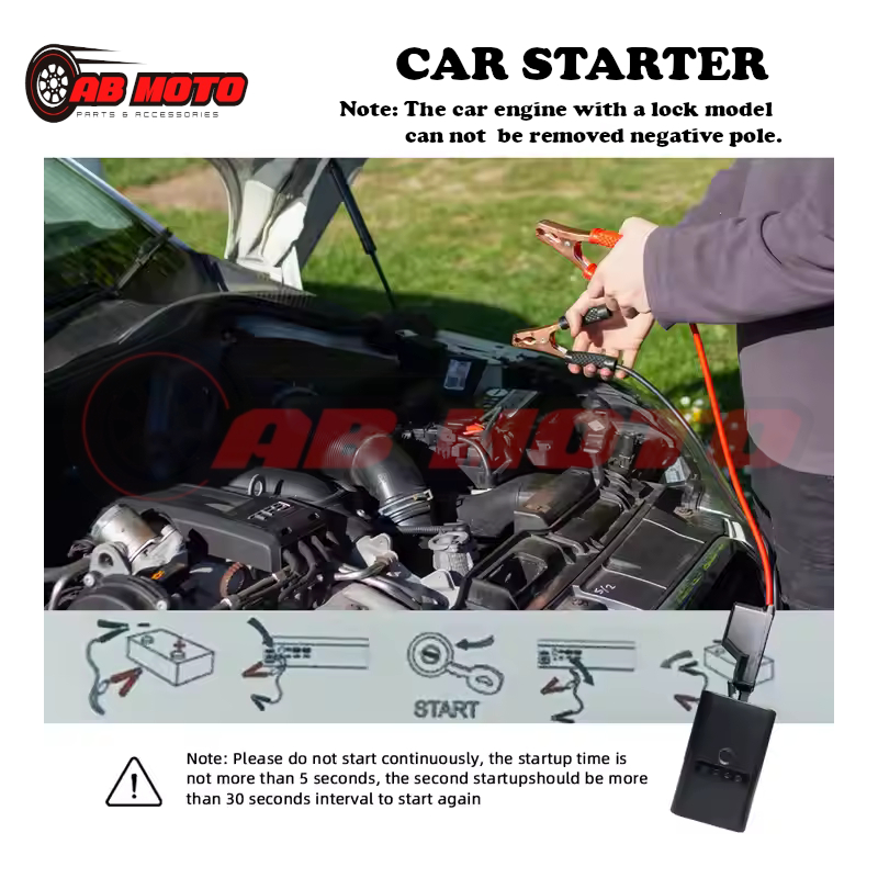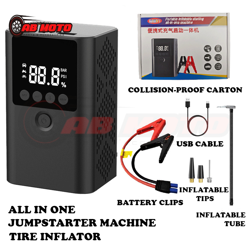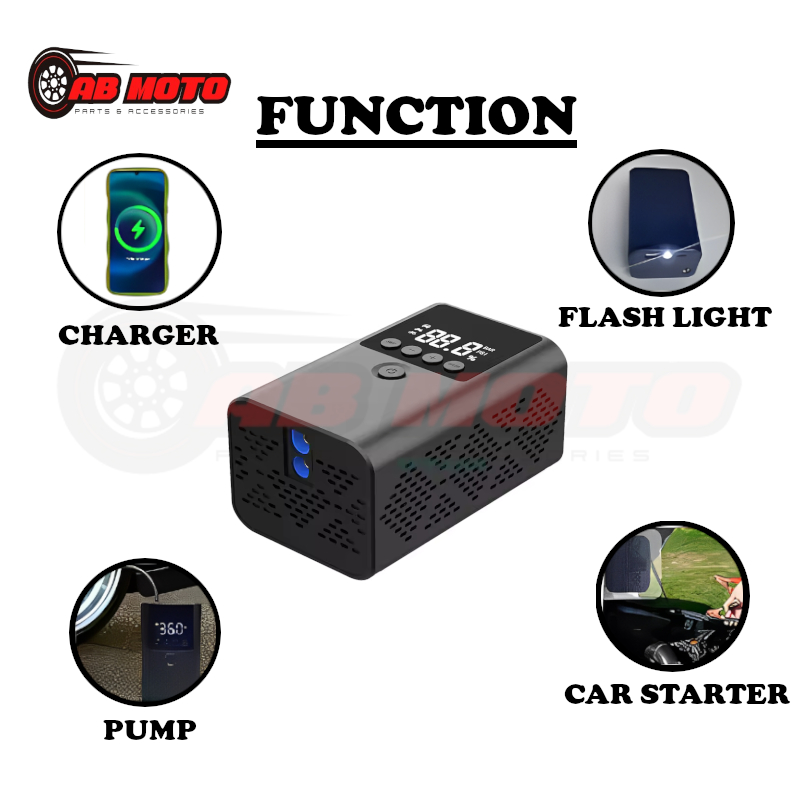 ABmoto Portable Car Tire Inflator 12V Car starter 12V Rechargeable Mini Electric Air Compressor
